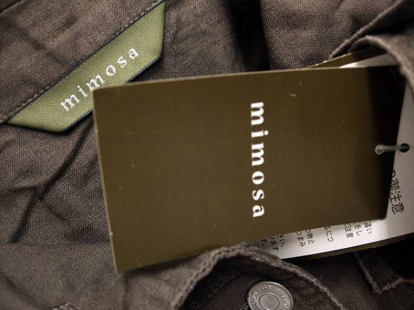mimosa 麻混ジャケットです。麻混ですので涼しく着れる一着。USED加工がしており良い風合いです。◆サイズはLで着丈約46.5cm・肩幅約40cm・袖丈約46.5cm・身幅約43cmです。◆タグ付き新品状態です。◆