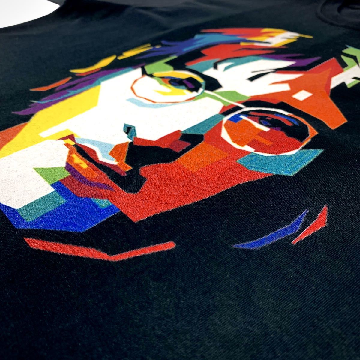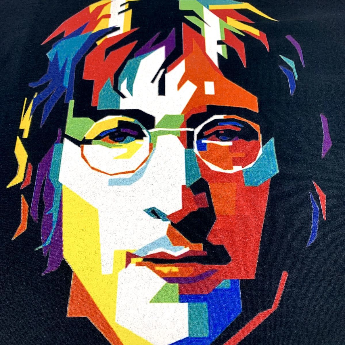 誰もが知る世界で一番成功したイギリスのロックバンド、ザ・ビートルズのオリジナル・メンバーで、主にボーカル・ギター・作詞・作曲を担当したジョン・レノンのカラフルポップアートデザイン。