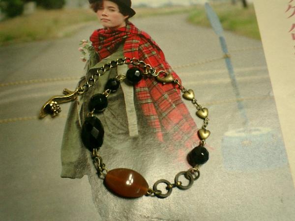 シックなオニキスと可愛いカーネリアンでブレスレットを作りました♪やさしい雰囲気でこれからの季節にぴったりです。オニキスは8ミリと6ミリの丸カットでカーネリアンは1・5センチ×1センチ位の円錐形です。いろいろなデザインのチェーンでつないでいます。シックなお色でまとめていますので大人っぽい可愛さです♪シンプルで飽きのこないいつまでも着けられるデザインを考えて作りました!長さは18センチ+アジャスター5センチで最長23センチ位です。お揃いのネックレスも出品しています♪ハンドメイドをご理解頂いてノークレーム、ノーリターンでお願いします