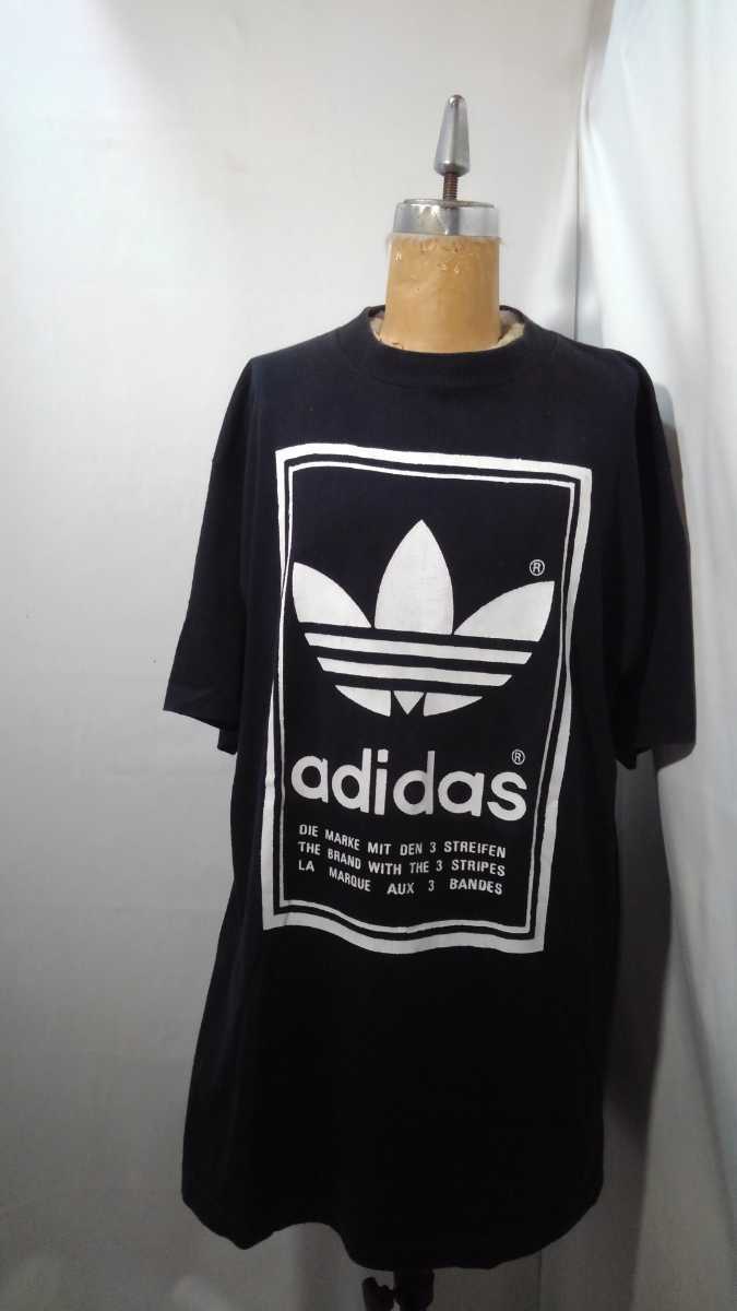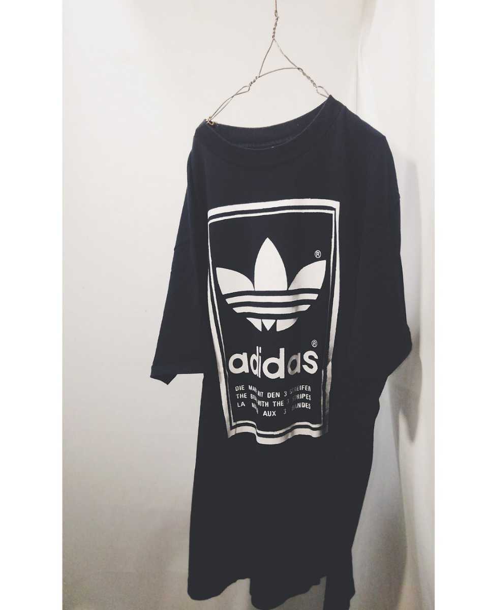 スニーカーのシュータン等に良く見られるボックスロゴをTシャツにあしらった通常のトレフォイルマークとは少し違った雰囲気を感じさせるデザイン。サイズも大きめなのでオーバーサイズのコーディネートが楽しめると思います。