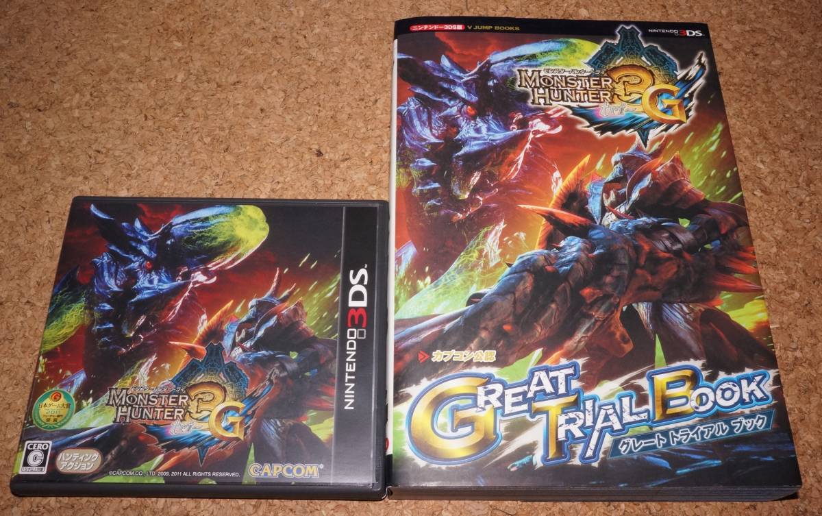 「モンスターハンター3(トライ)G」中古・美品 と 「グレートトライアルブック」中古本のセットです。