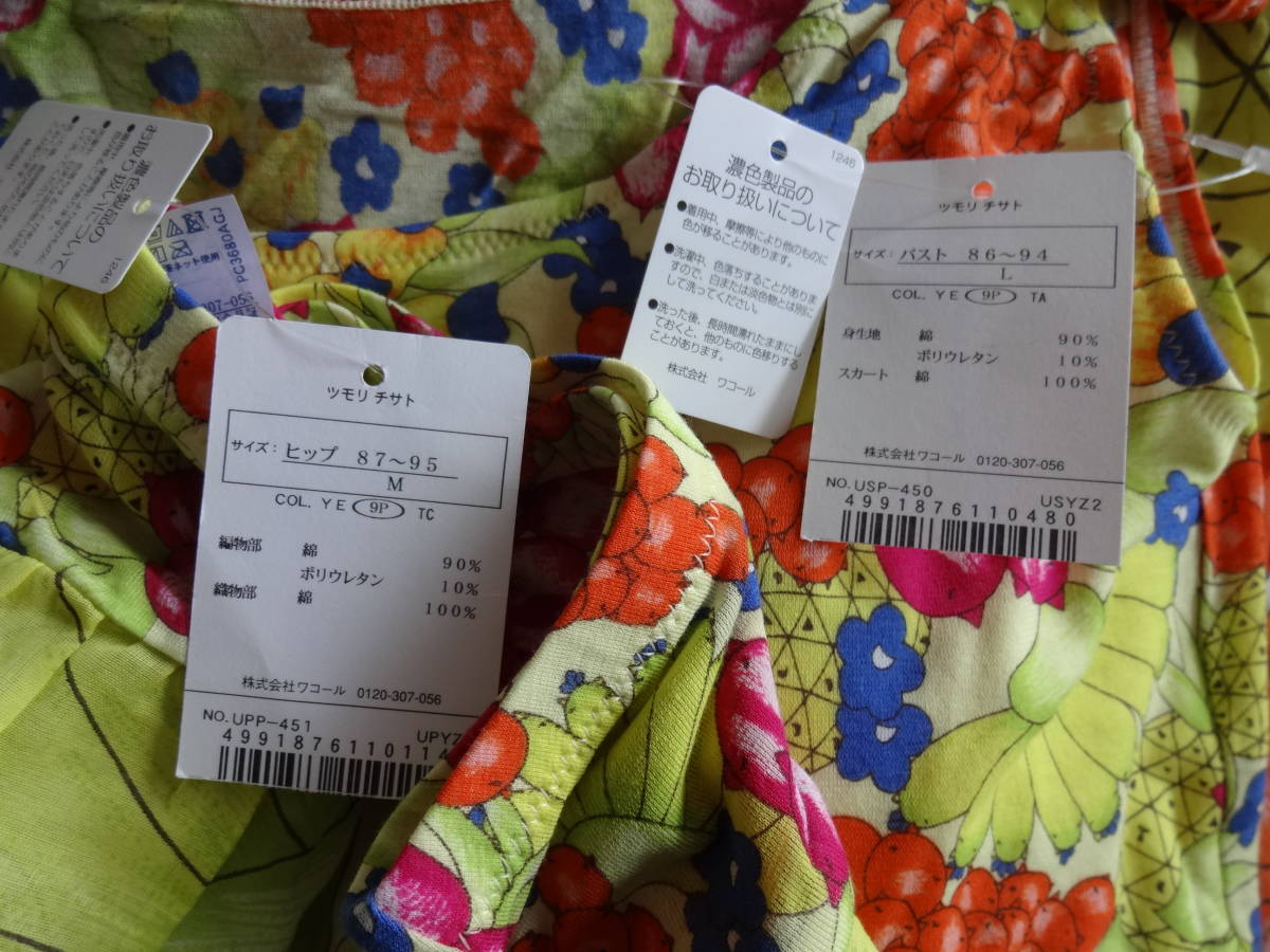 ツモリチサト☆ワコール新品カップ付キャミソール ドレス ワンピースL&タップパンツM★フルーツ天国ネコYE日本製 送料185円追跡OK!