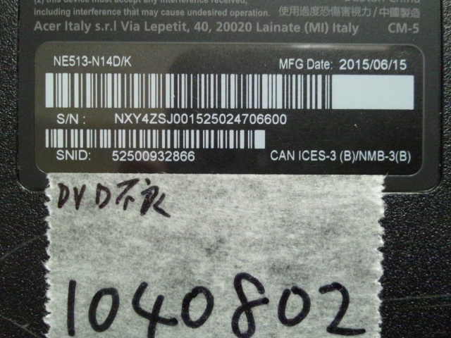 商品:中古Gateway NE513 Celeron N3050 1.6GHzの下半身(本体部分)