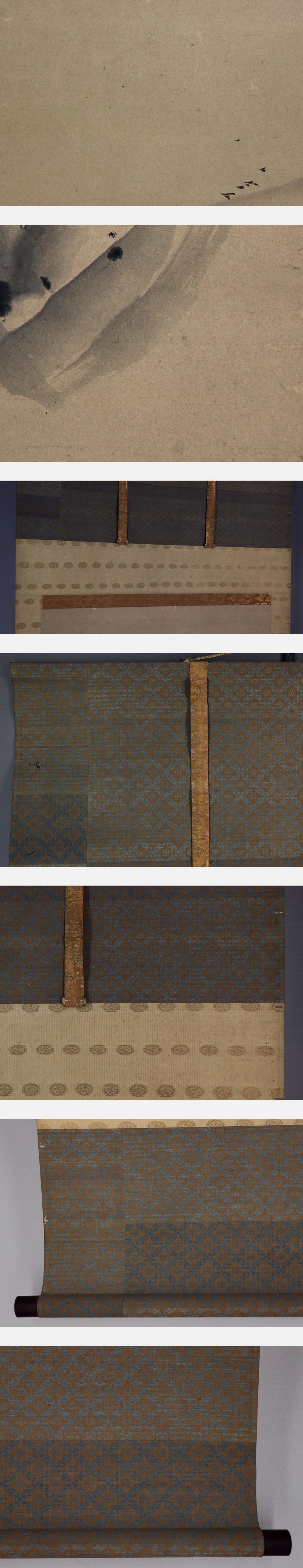 狩野尚信 かのう-なおのぶ (1607-1650) 江戸時代前期の画家。 慶長12年10月6日生まれ。狩野孝信の次男。父の跡をつぐ。 寛永7年(1630)江戸にでて幕府奥絵師となり, 木挽(こびき)町狩野家をひらく。二条城,御所などの障壁画制作に参加した。 慶安3年4月7日死去。44歳。京都出身。通称は主馬(しゅめ)。号は自適斎。 本紙は、染み、折れ、皺、虫食、ヤケがあります。 表装は、染み、汚れ、皺、虫食、破れ、ほつれがあります。 【サイズ】 作品 横約62.5cm×縦約39.5cm 表装 横約74.5cm×縦約128.5cm |