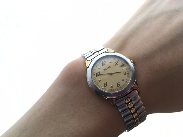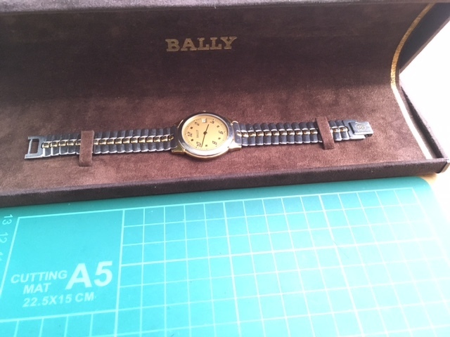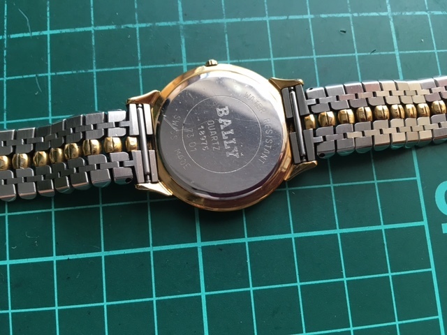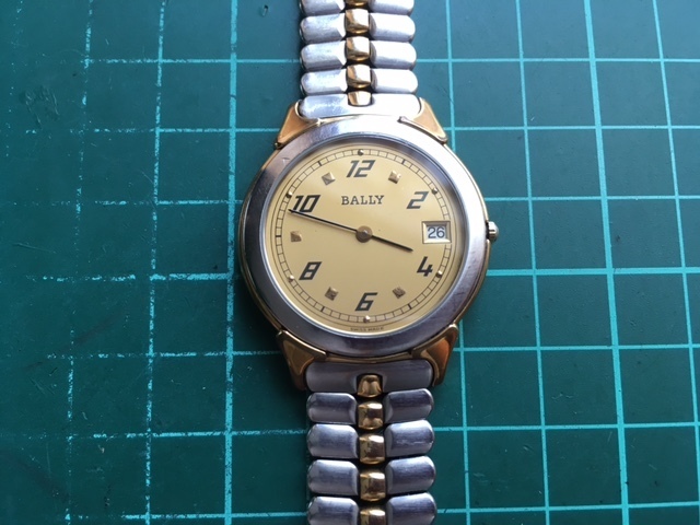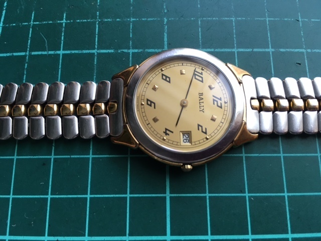 良好 ケース付 レア ヴィンテージ BALLY バリー SWISS MADE 73.01 デイト シルバー×ゴールド 純正ブレス クオーツ メンズ 腕時計