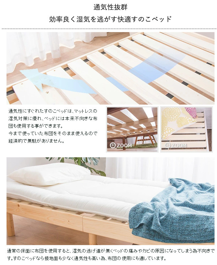 シンプルなデザインを追求した機能性の高いすのこベッド。