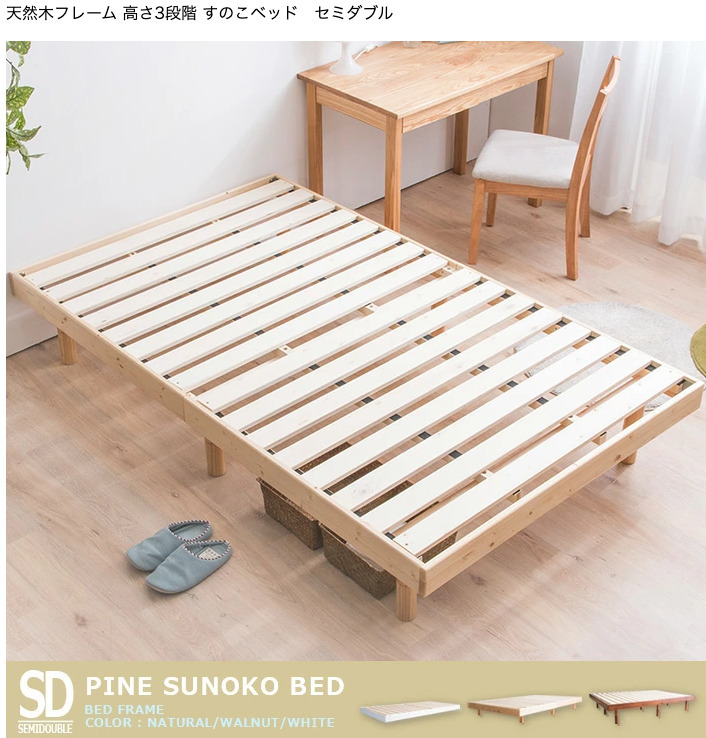 【無くなり次第終了!】すのこベッド ベッド セミダブル 敷布団 頑丈 シンプル ベッド 天然木フレーム ホワイト