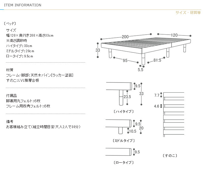 ベッド下高さ(下位設定)0・(中位設定)10.5・(上位設定)23.5cm