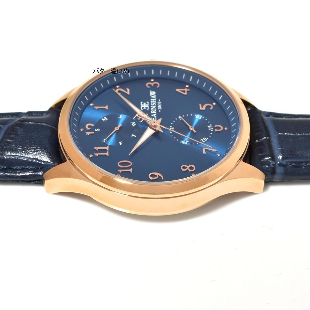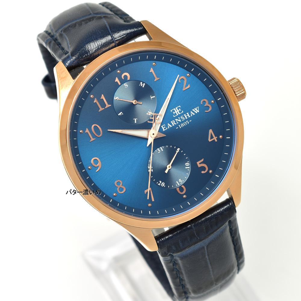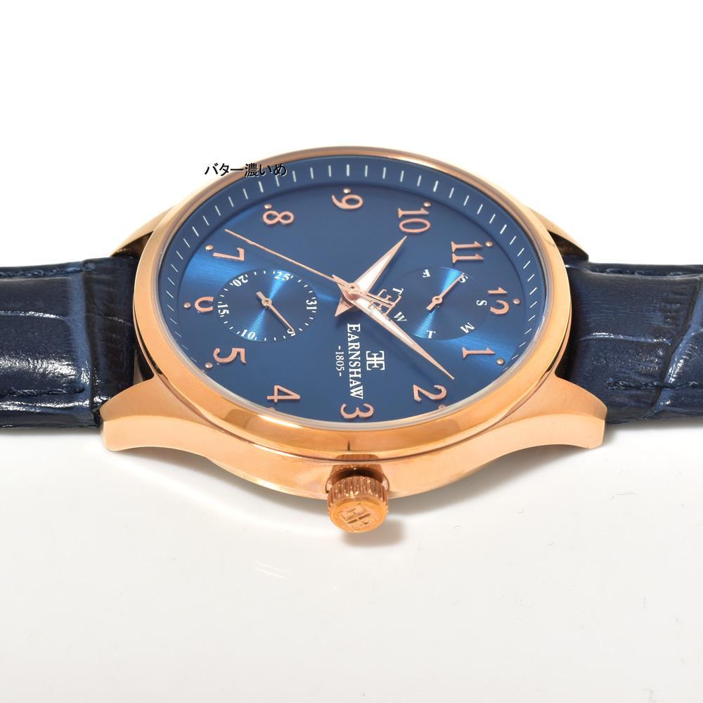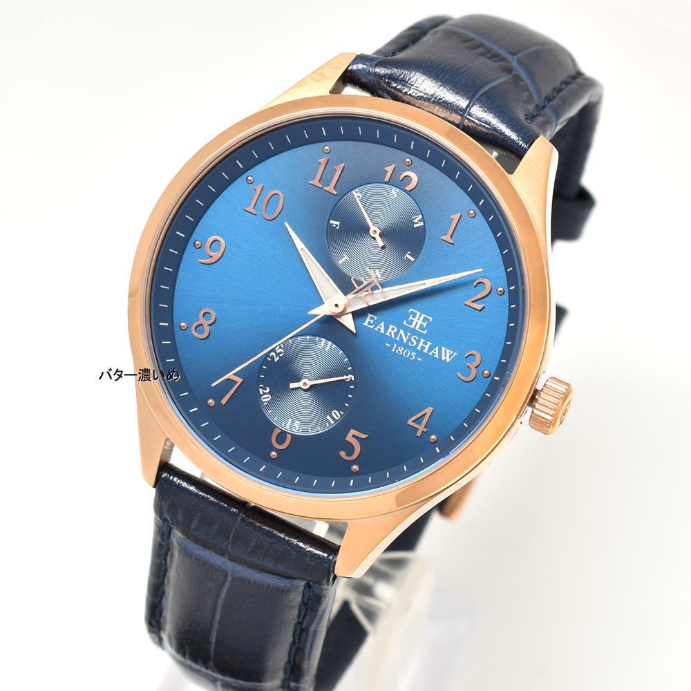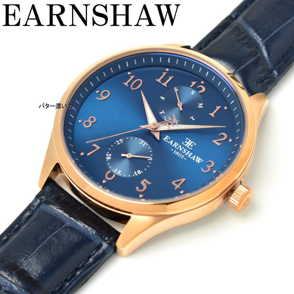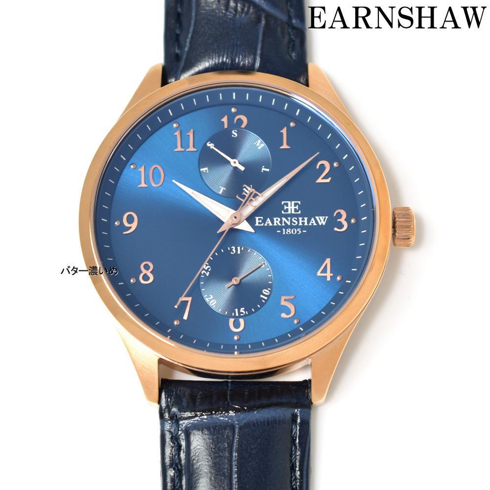 EARNSHAW 腕時計 メンズ クオーツ ネイビー革ベルト レザーベルト ES-8079 クラシック ネイビー×ローズ文字盤 新品