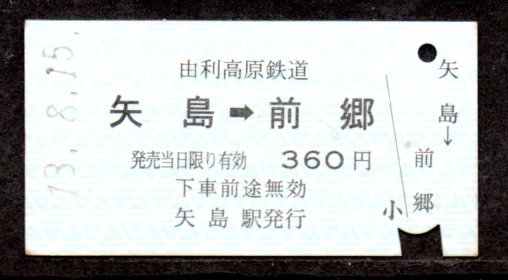 硬券 由利高原鉄道 矢島から前郷