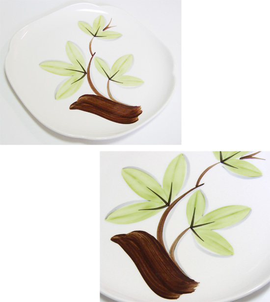 ヴィンテージ CONTINENTAL KILNS ハンドペイント Woodleaf 大皿/50s,ロカビリー,アロハ,40s,アールデコ,ハワイアン,TIKI,HULA.アンティーク
