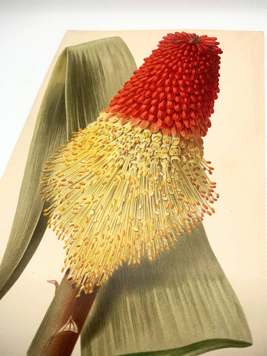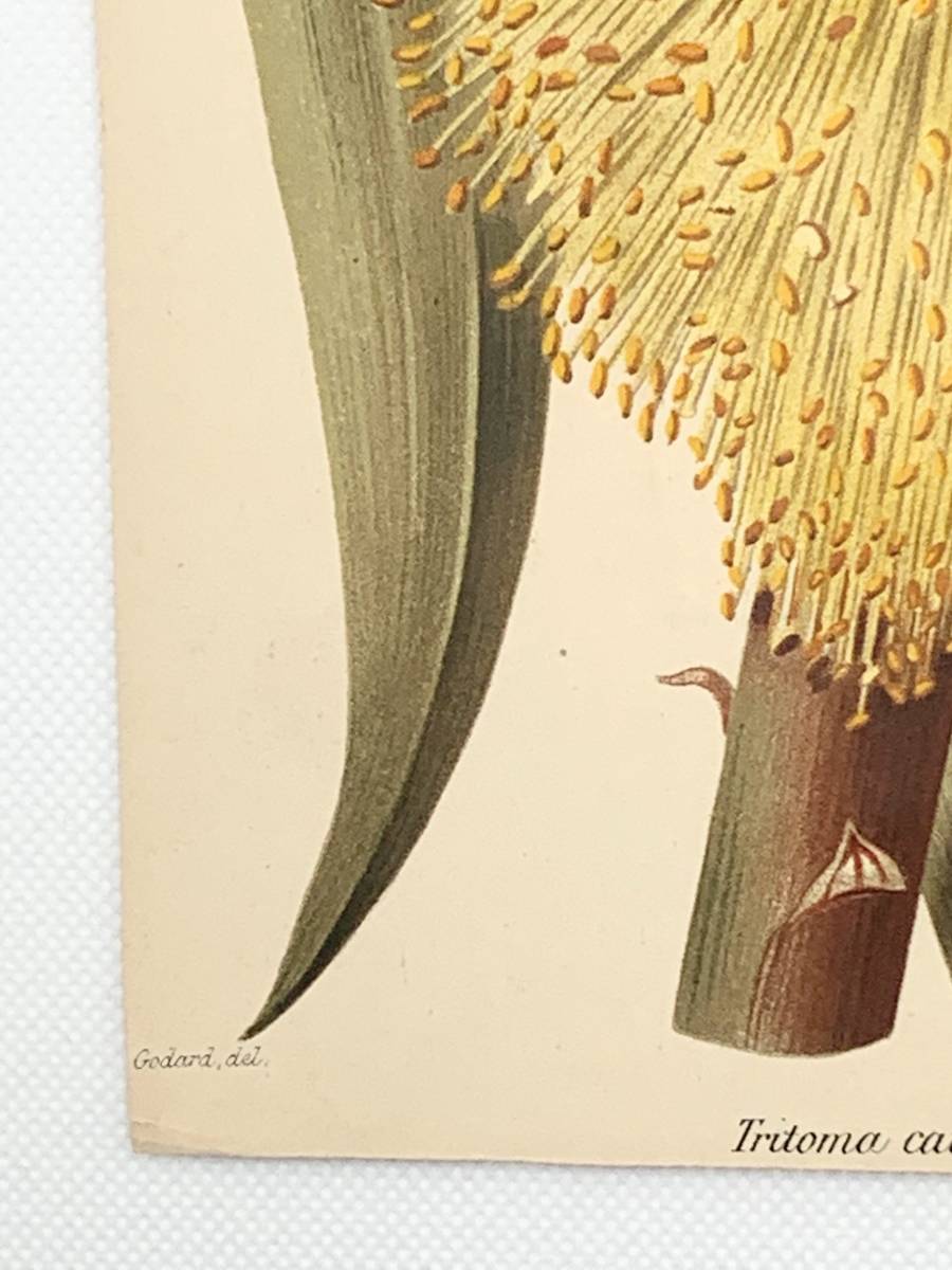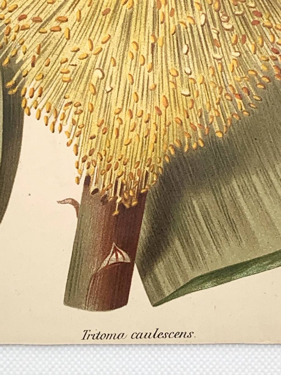 フランスアンティーク 博物画 『Tritoma caulescens』 多色刷り石版画 ボタニカルアート