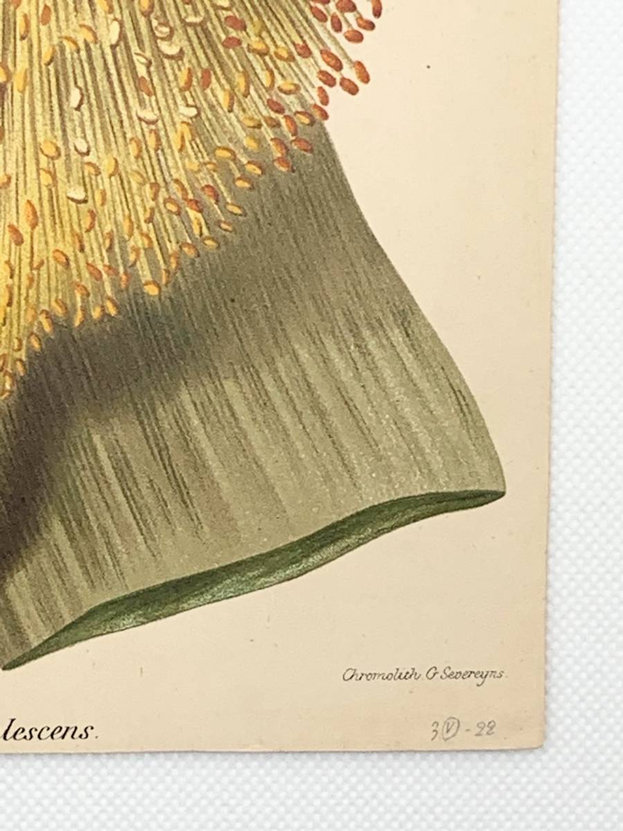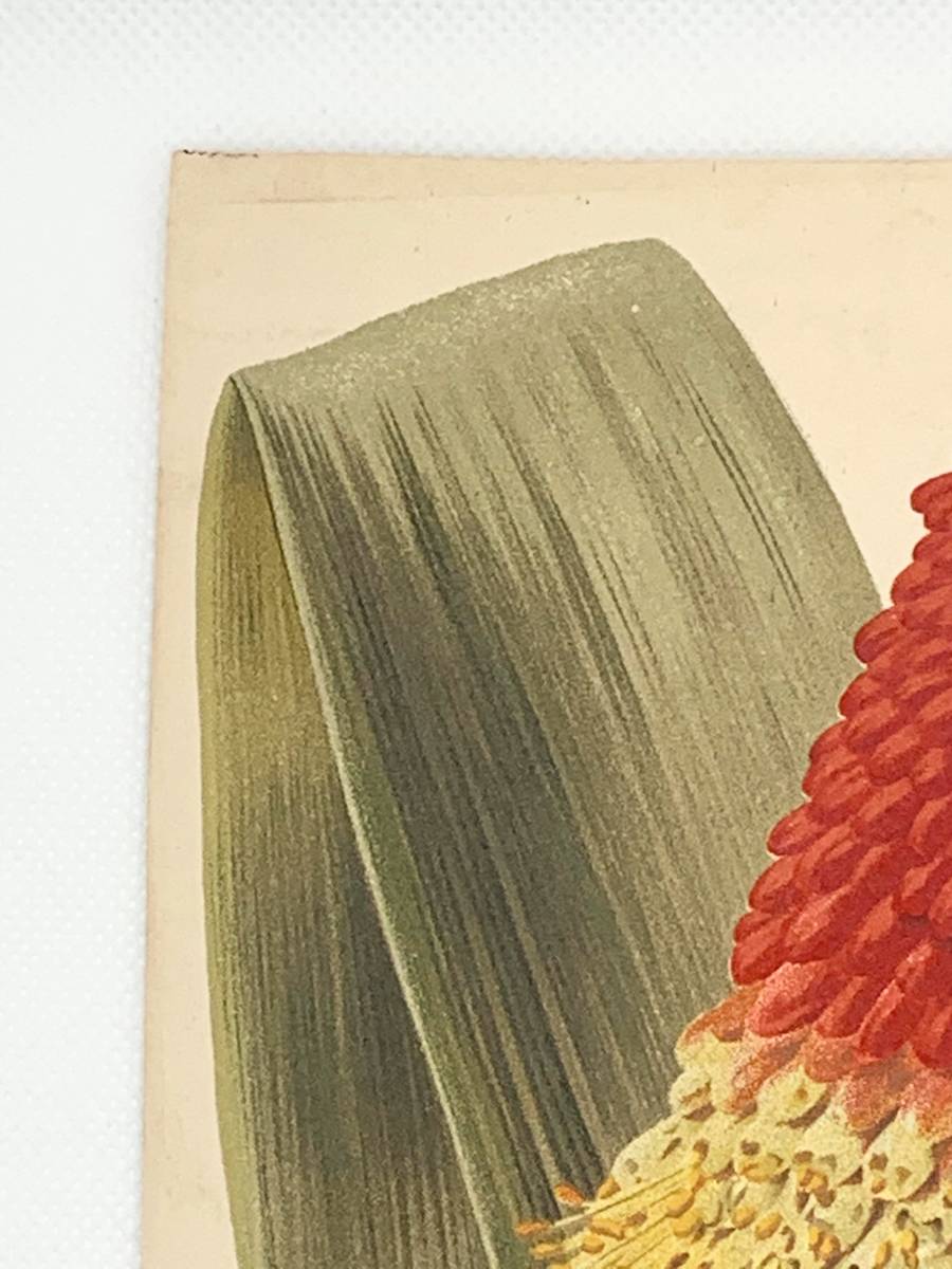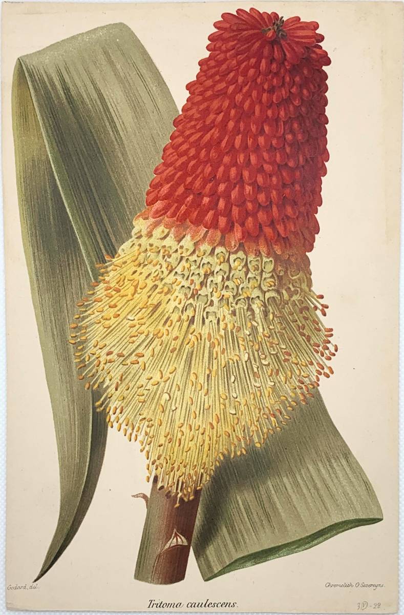 フランスアンティーク 博物画 『Tritoma caulescens』 多色刷り石版画 ボタニカルアート