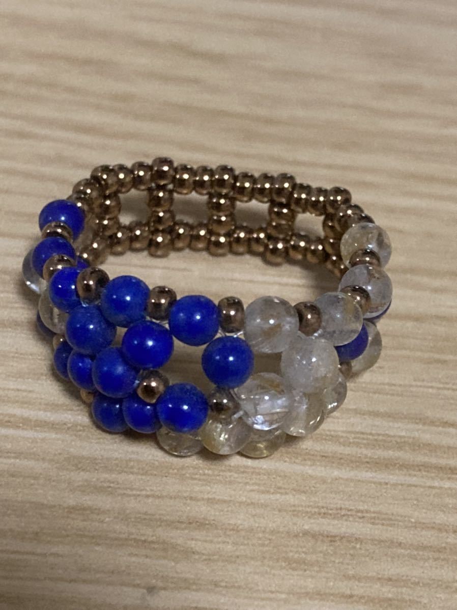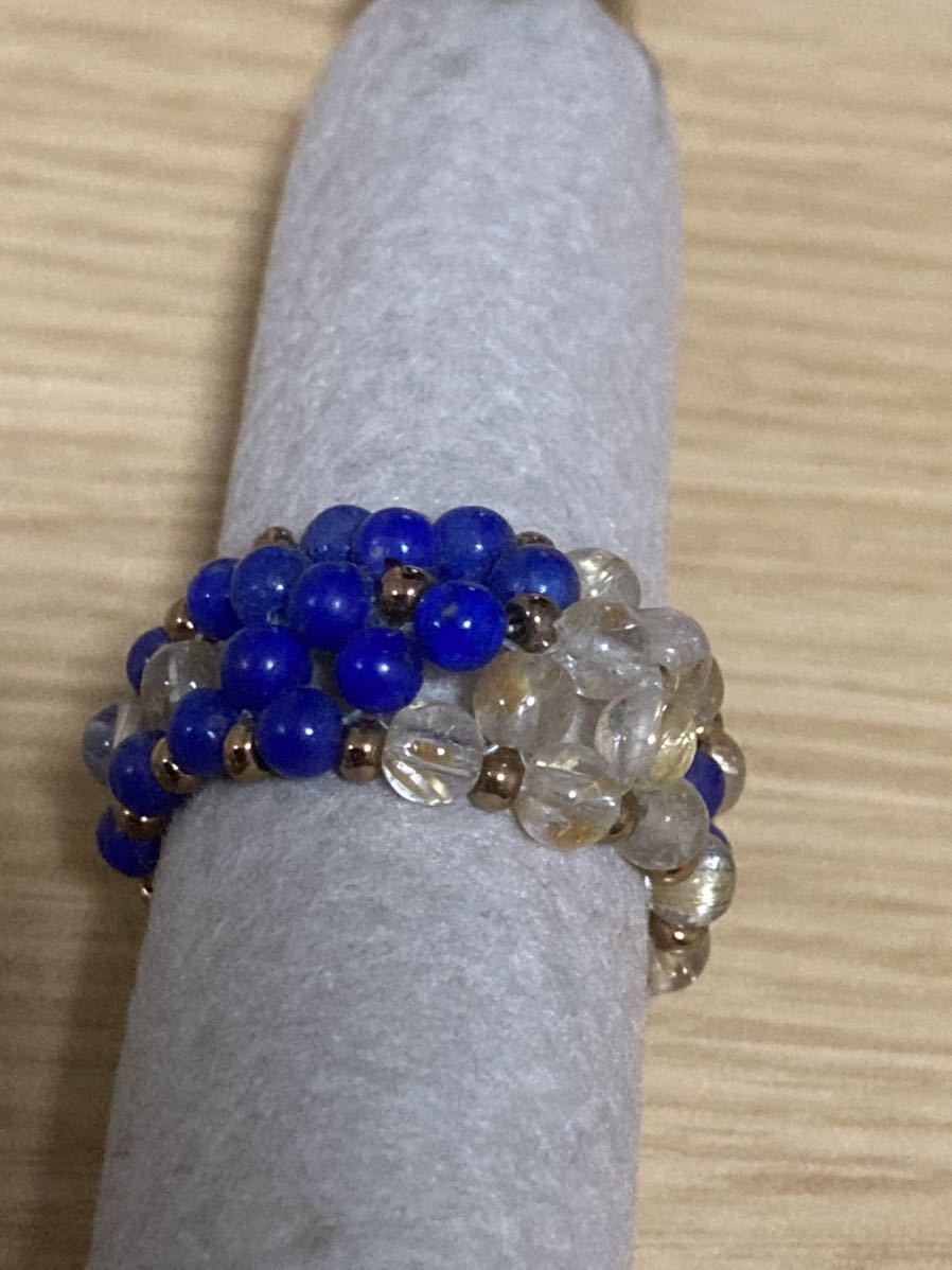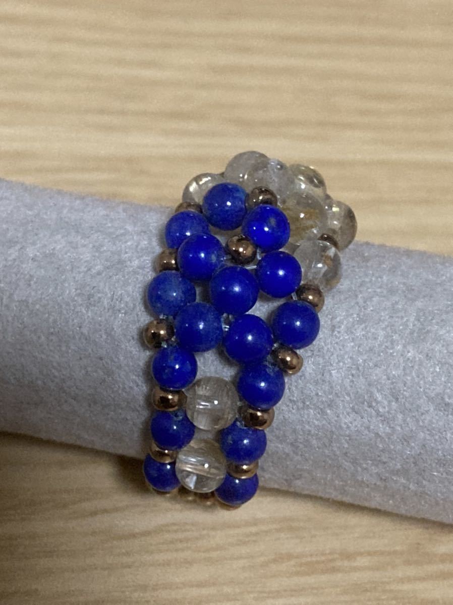 天然石 ビーズリング(ハンドメイド)(猫)スワロフスキー