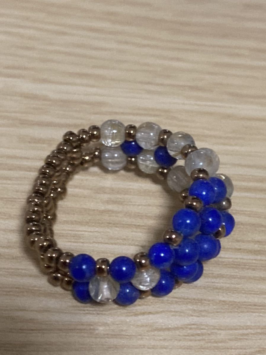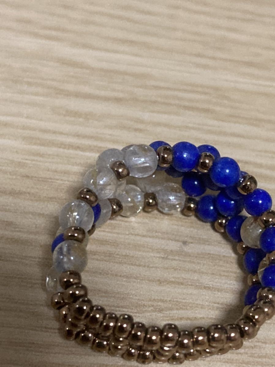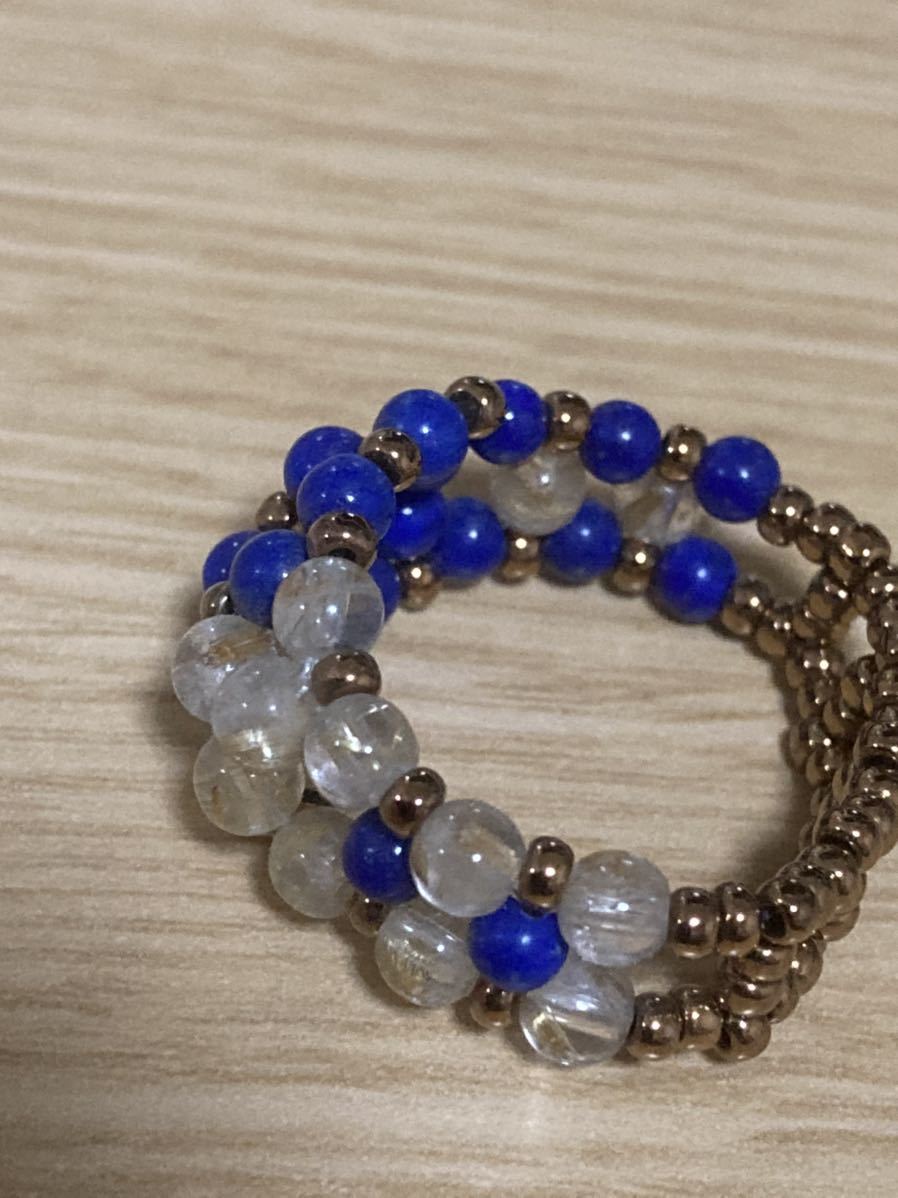 天然石 ビーズリング(ハンドメイド)(猫)スワロフスキー