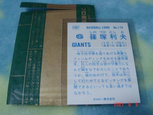 激レア 未開封・開封品・袋付き カルビー87年 プロ野球カード NO.174 (篠塚/巨人) 極美品