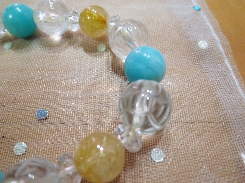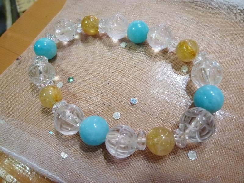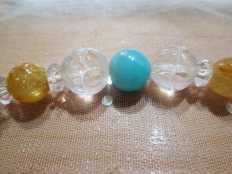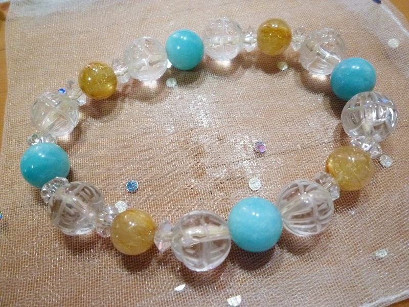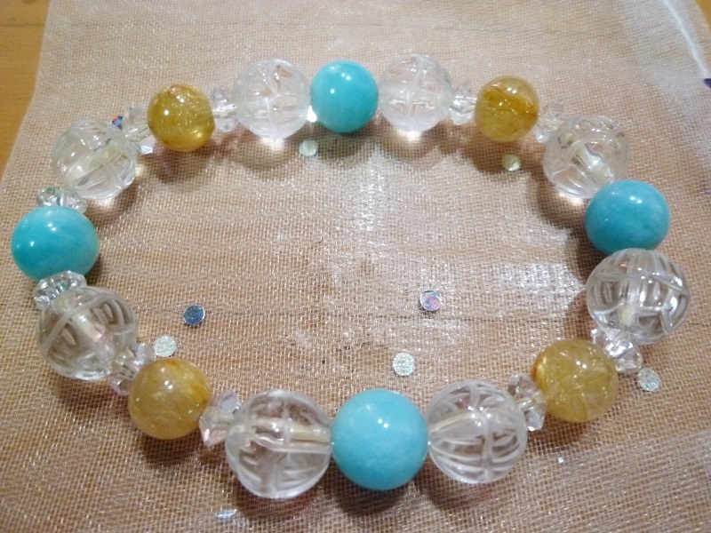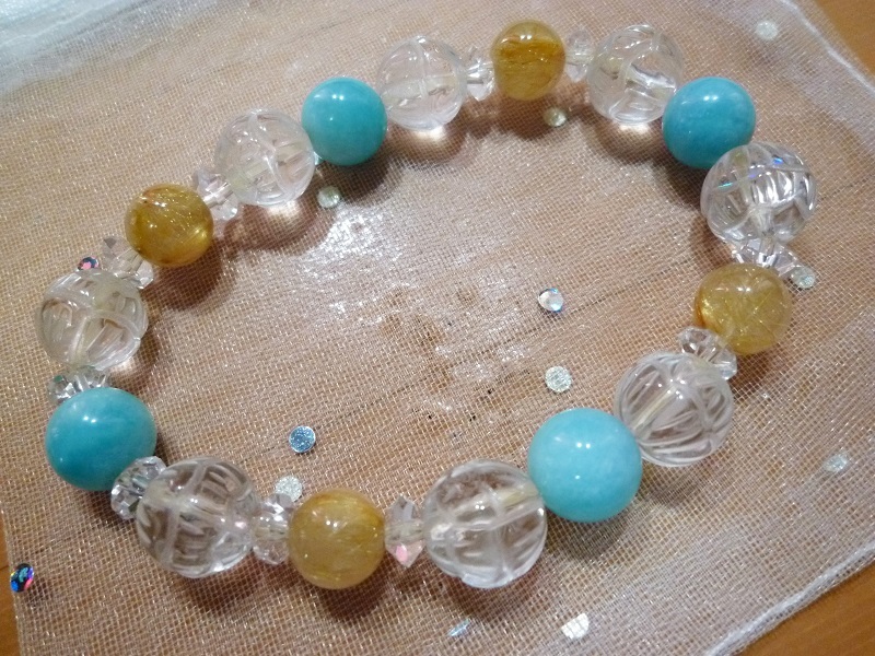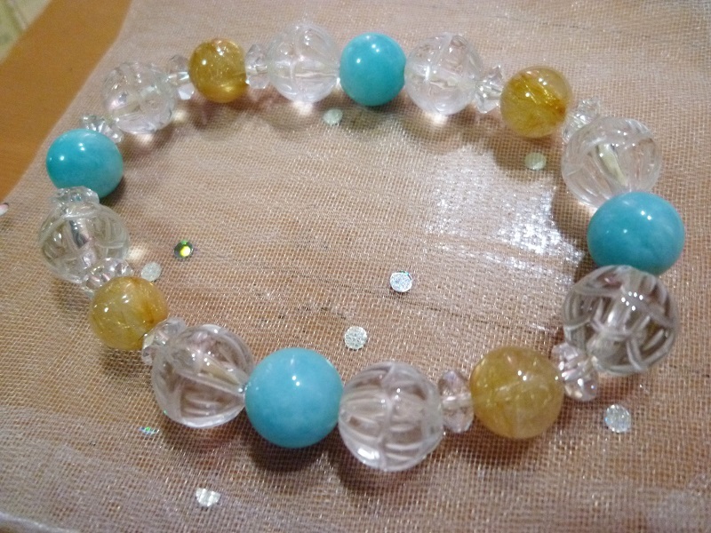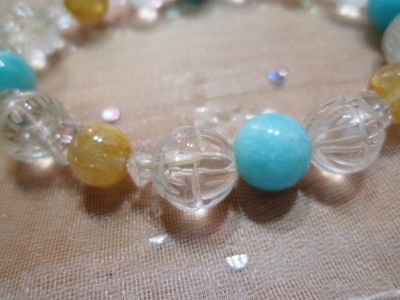 アマゾナイト(ペルー産)ゴールドルチルクォーツ 水晶 ブレスレット