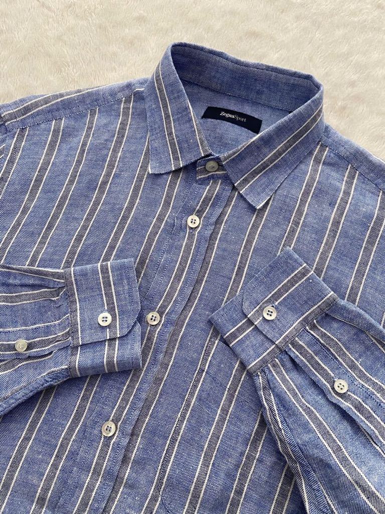 Zegna Sport sizeS リネンシャツ 長袖 ストライプ ゼニアスポーツ エルメネジルドゼニア メンズ 春夏