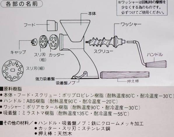 ハンドルを回すだけで楽に挽けひき肉料理が手軽にできます。
