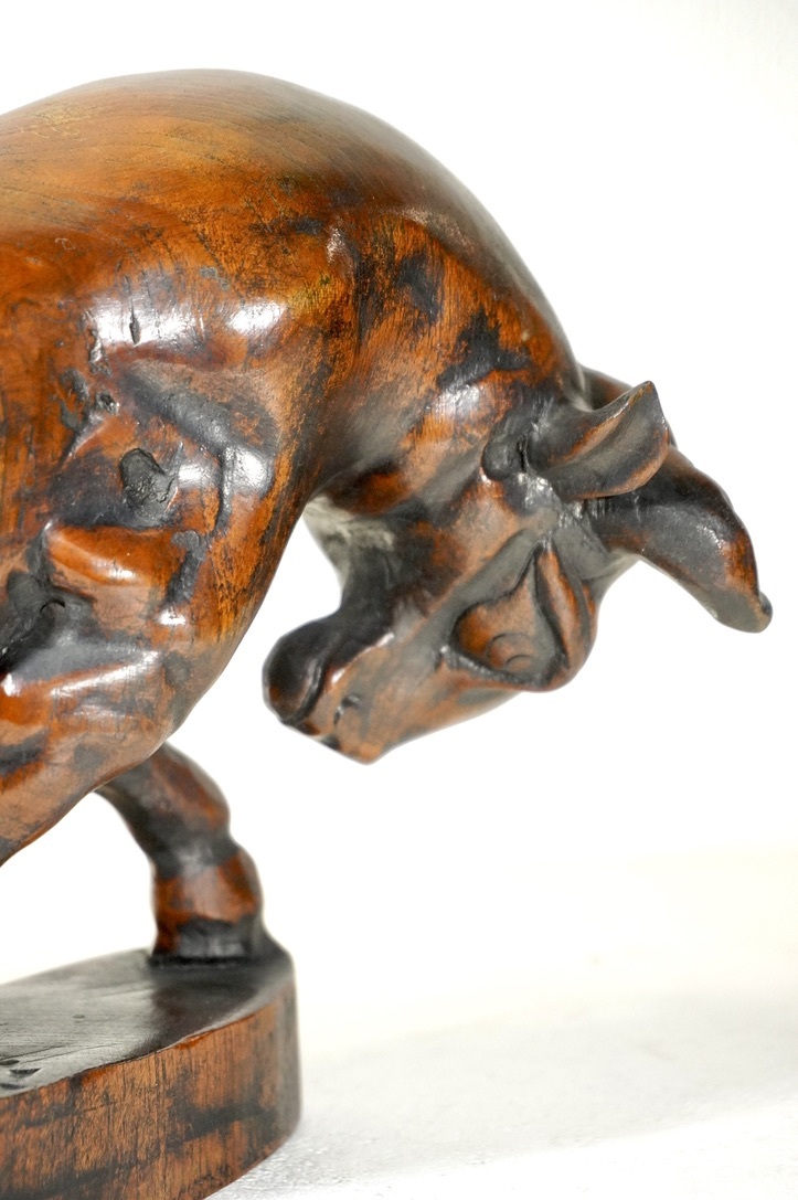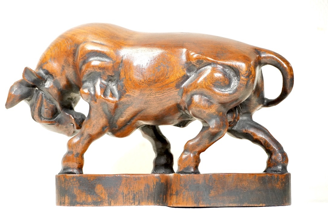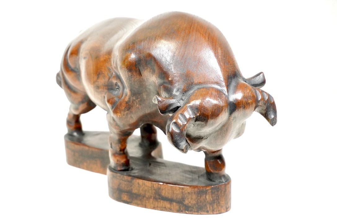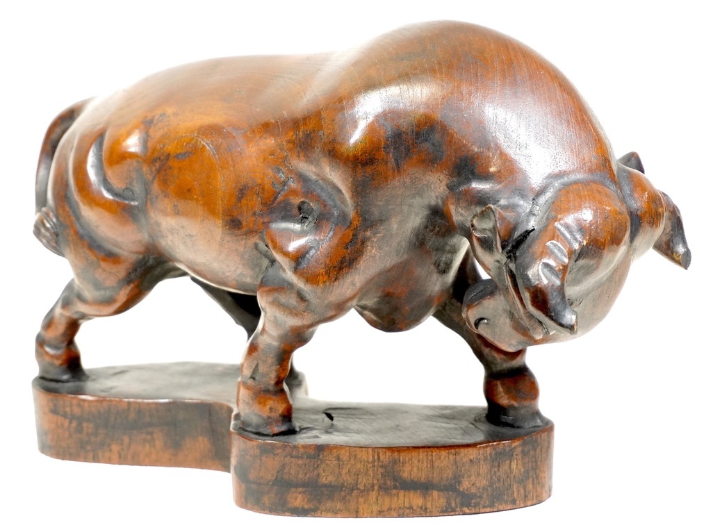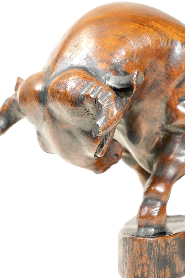 ビンテージ 一刀彫闘牛像 オブジェ 直径29cm 高さ20cm 重厚感のある素晴らしい逸品! エステートセール KNA