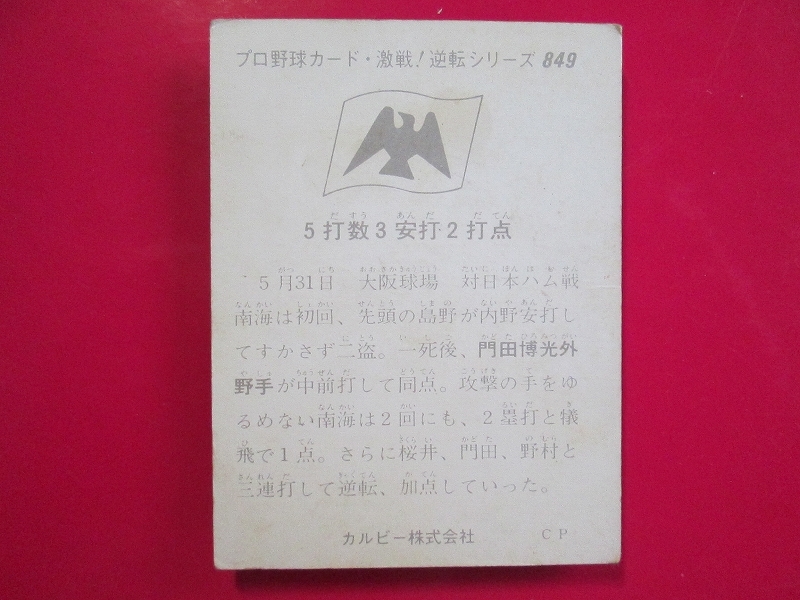 ・販売:カルビー株式会社 ・販売時:1976年 ・サイズ: 8.0 cm x 6.0 cm ・素材:紙 ・中古扱い ・40年以上経過しているカードです。状態は画像をご確認ください。 | |||