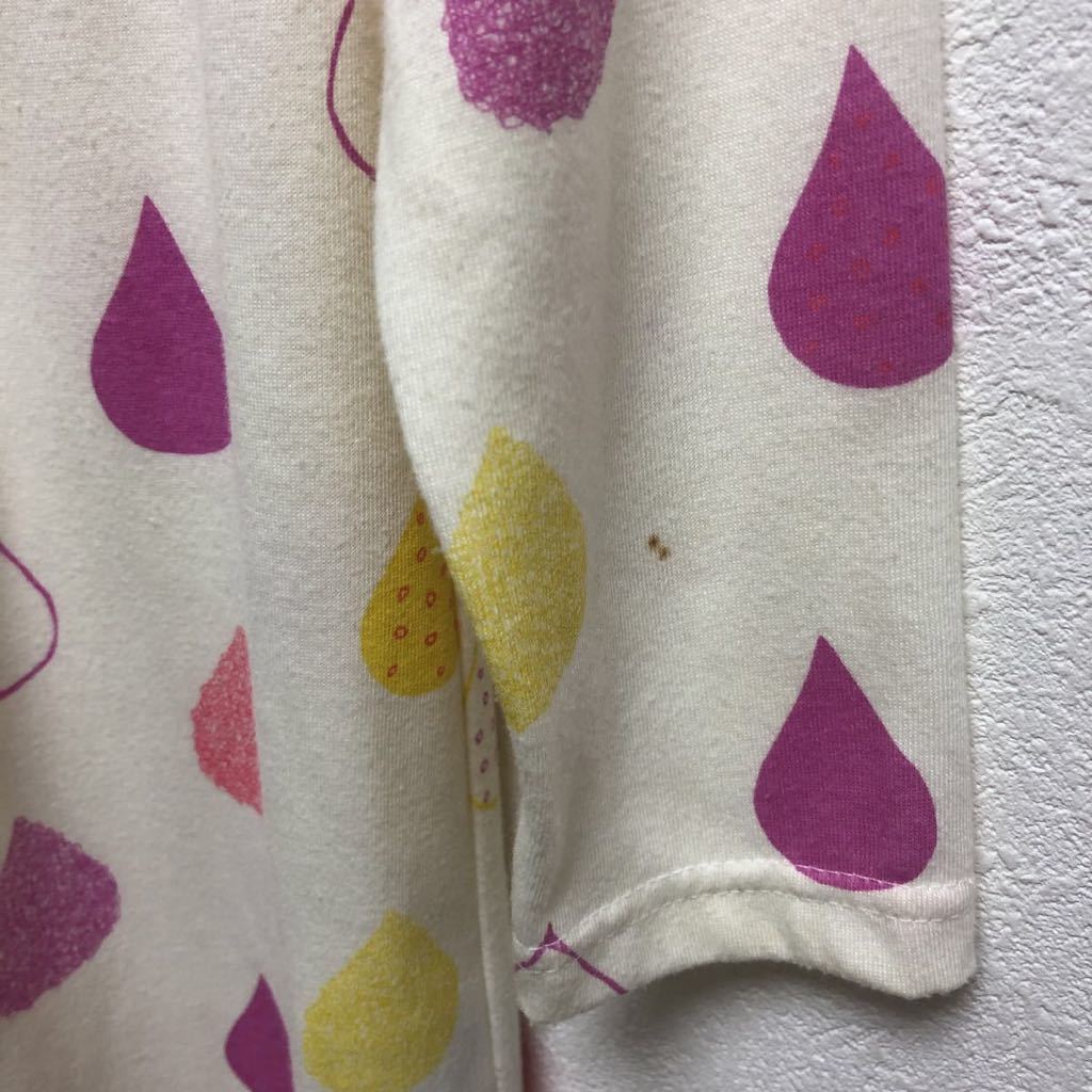 ・黄色や紫のレインドロップ柄やピンクの襟付きがポイントの長袖カットソー ワンピースです。
