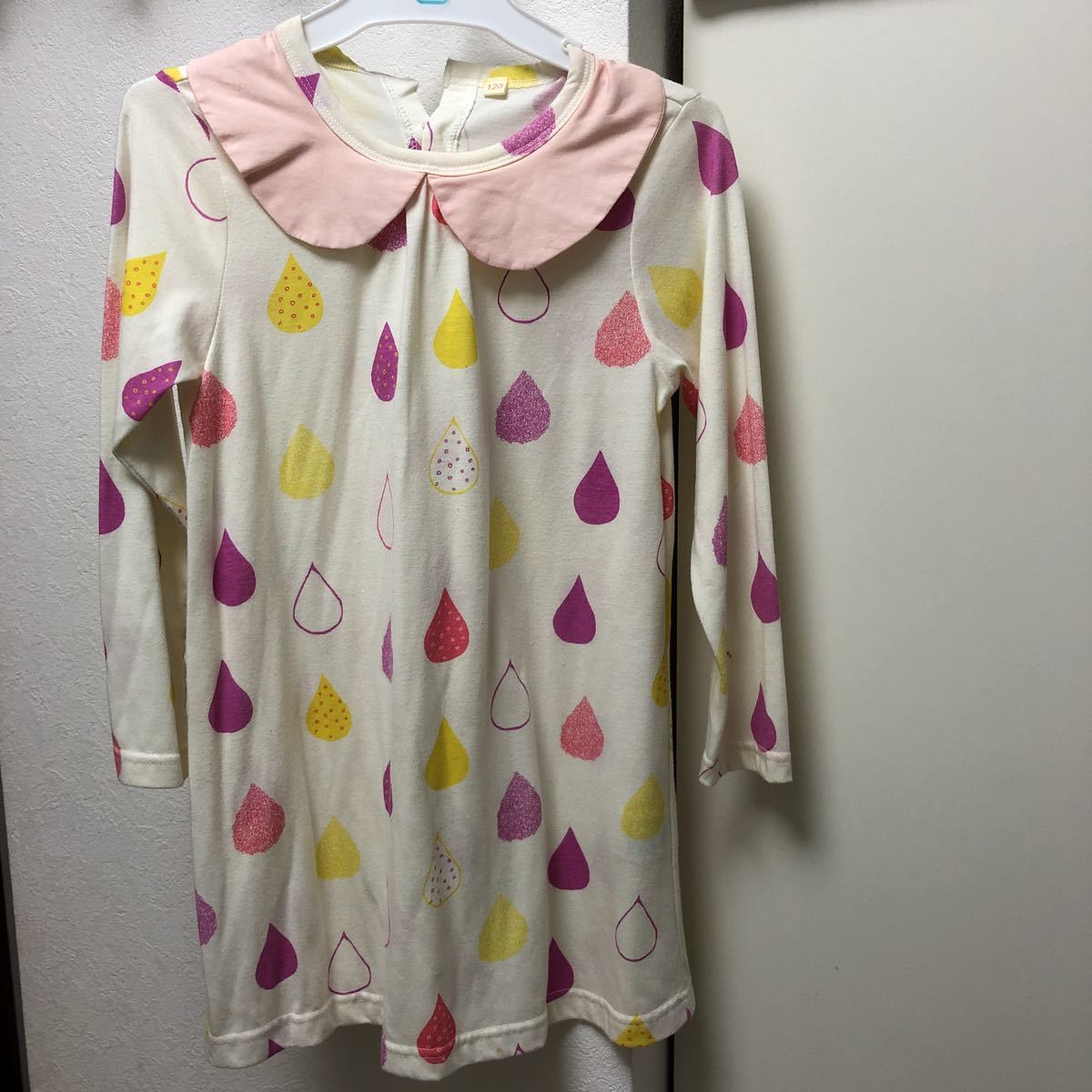 こちらは★襟付き レインドロップ柄 120 長袖カットソー ワンピース ロンT 2way★になります。