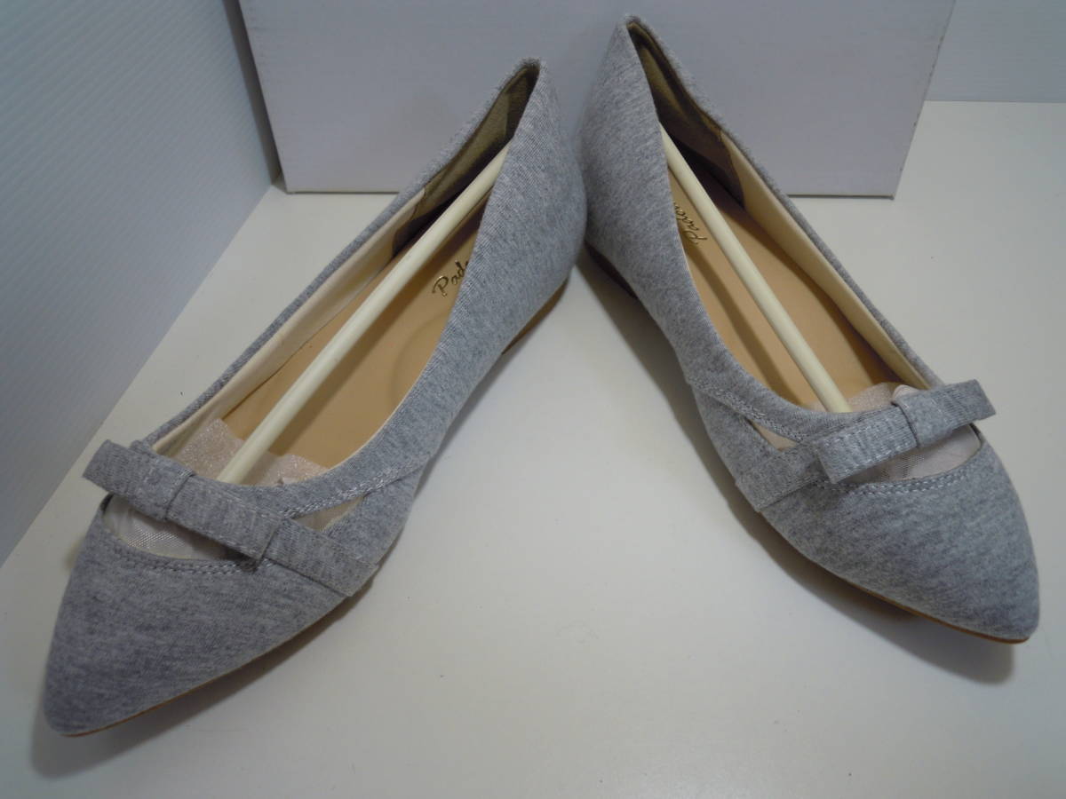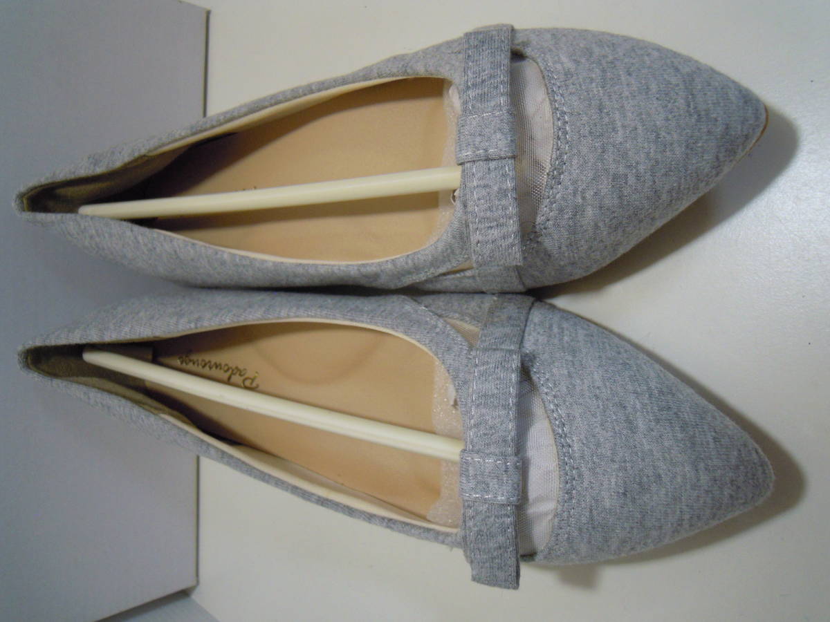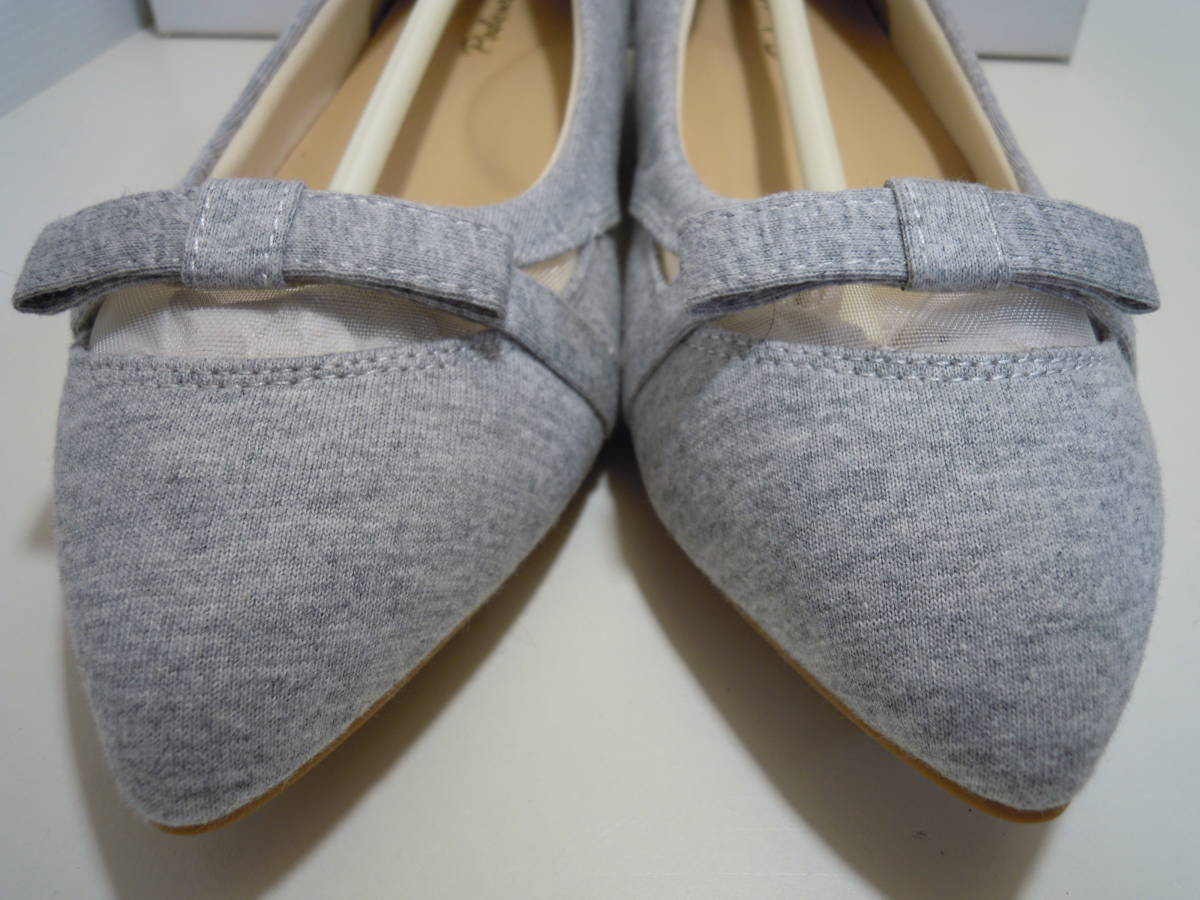 【ブランド・形態】 Padourouge パドリュージュ スエード調インヒールリボンカッターシューズ サイズ24.5cmです。 【カラー】 グレーです。 掲載の実物写真はPC環境や光の加減により実物と色合いが若干異なる場合があります。 【特徴】 スエード調のインヒールタイプのカッターシューズ。 カッターシューズの履きやすさ+さりげない足長効果が期待できます。 甲部分は、抜け感のあるデザインに、控えめなリボンがあしらわれています。 シンプルで飽きの来ないデザインで洋服を選びません。 ヒール高さ:約1.0cm、インヒール高さ:約3.0cm、最大幅:8.5cm 【状態】 購入して自宅保管していた未使用品になります。汚れ・しみなど有りません。 保管箱はあります。 【材質】 アッパー表:合成繊維 アウトソール:合成底(ラバー) 【サイズ】 24.5cm、 質量385g+箱210g #パドリュージュ #Padourouge | |||