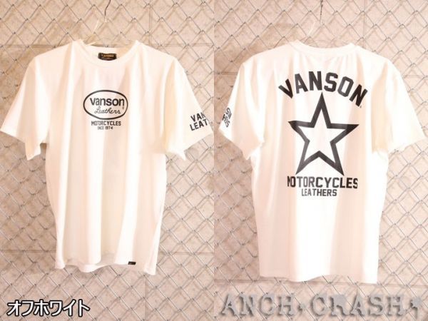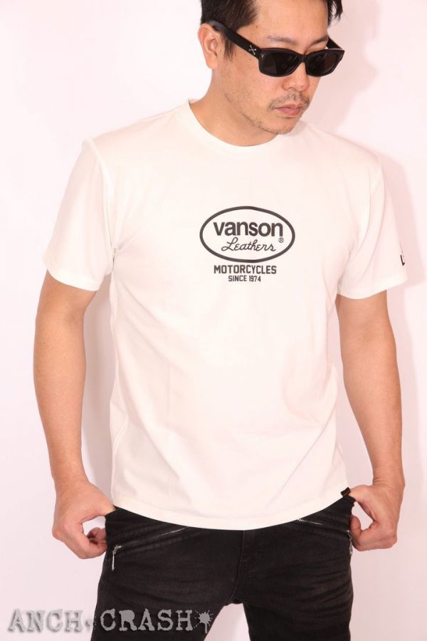 VANSON ドライ半袖Tシャツ ACV-904 ホワイト Mサイズ ワンスター★ バンソン 当店別注 吸汗速乾 抗菌防臭 UVカット ハーレー バイカー