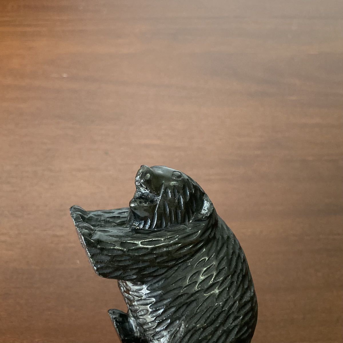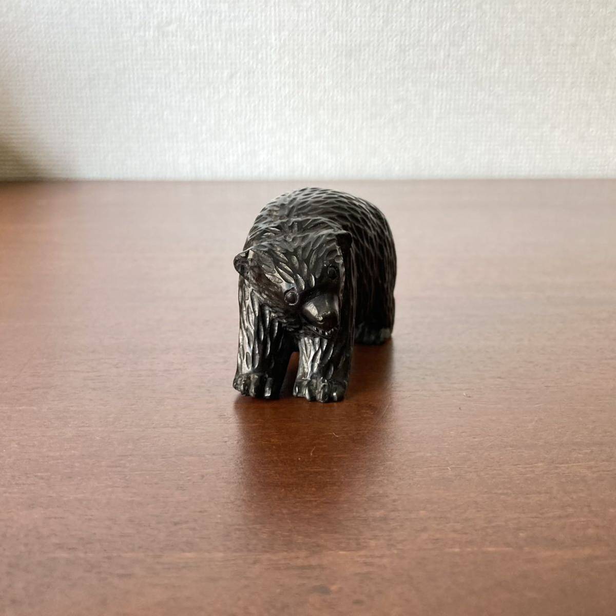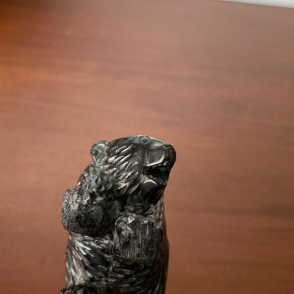 非常に珍しい、十勝石(黒曜石)で彫られた熊です。