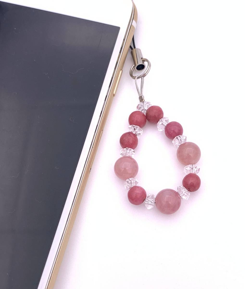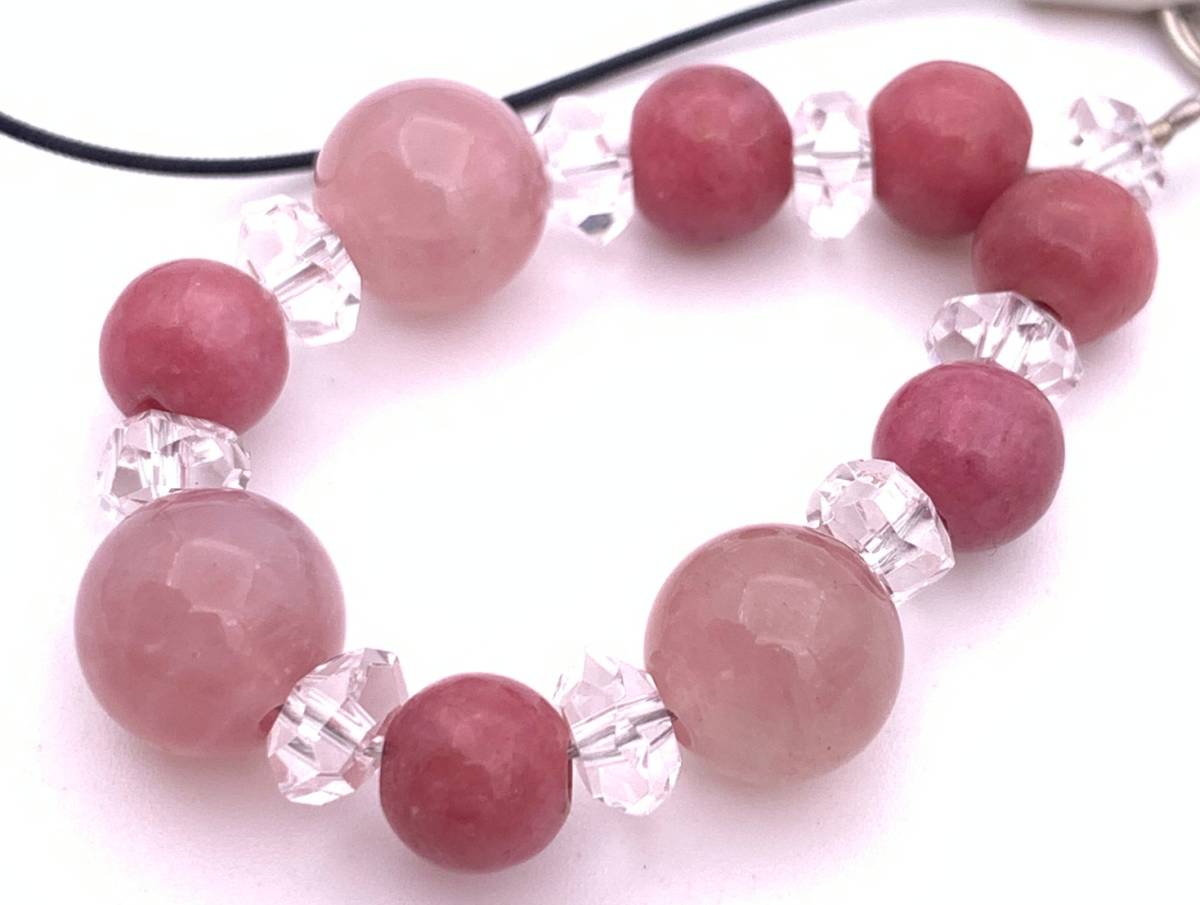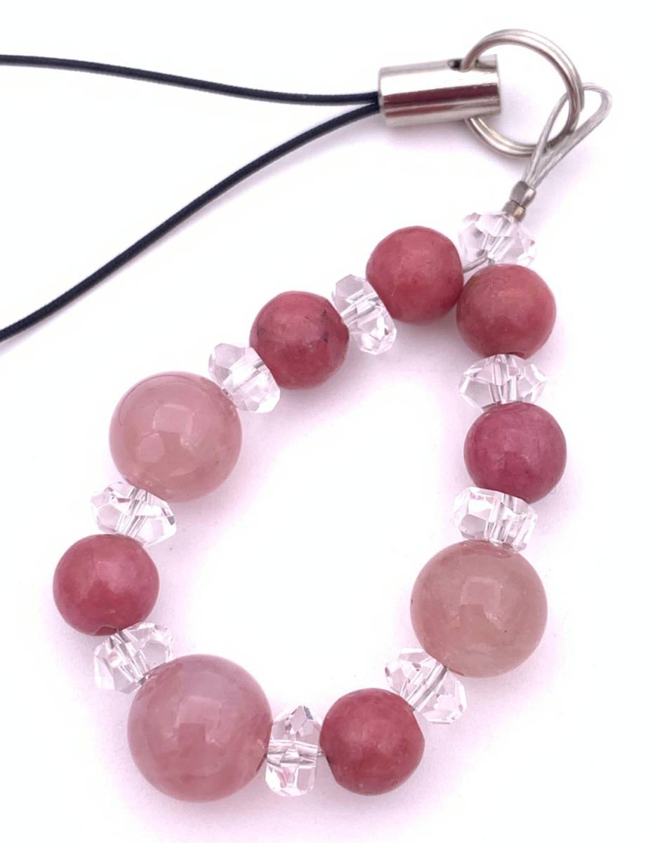 天然石ロードナイト&ディープローズクォーツのストラップ
