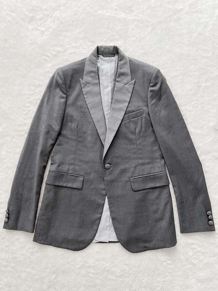 ・上質な生地を使い計算された細身で美しいシルエット、モダンなバランスに少しクラシック感あるタキシードデザインがお洒落なジャケットになります。