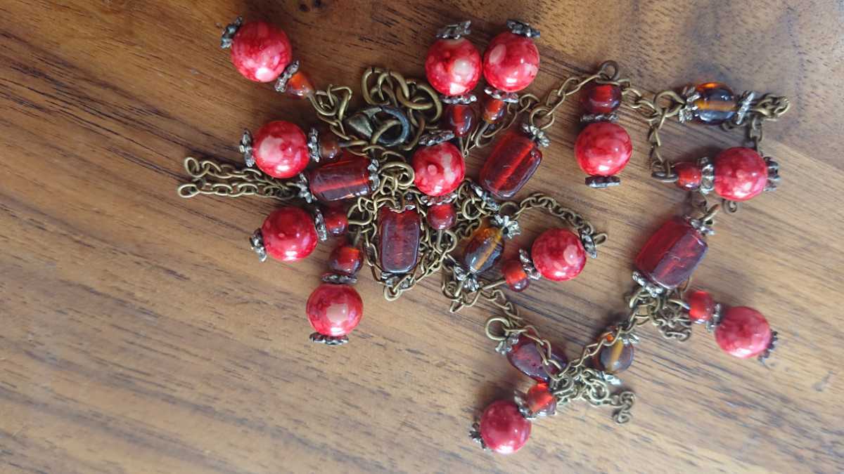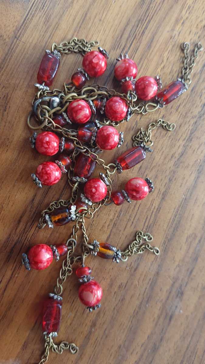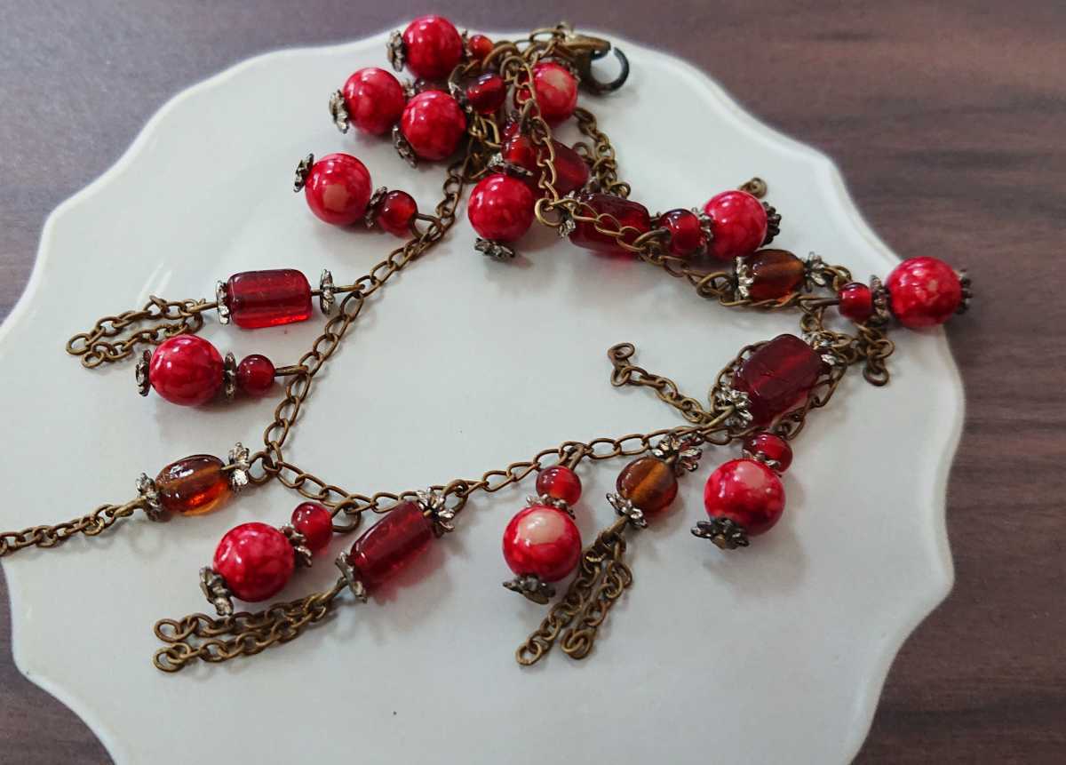 *訳ありは赤ビーズの表面に剥がれがある事、留め具にスレがある事です