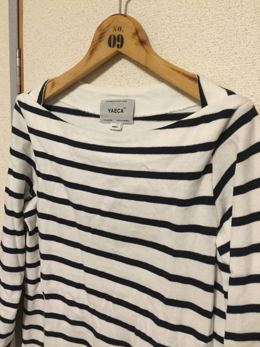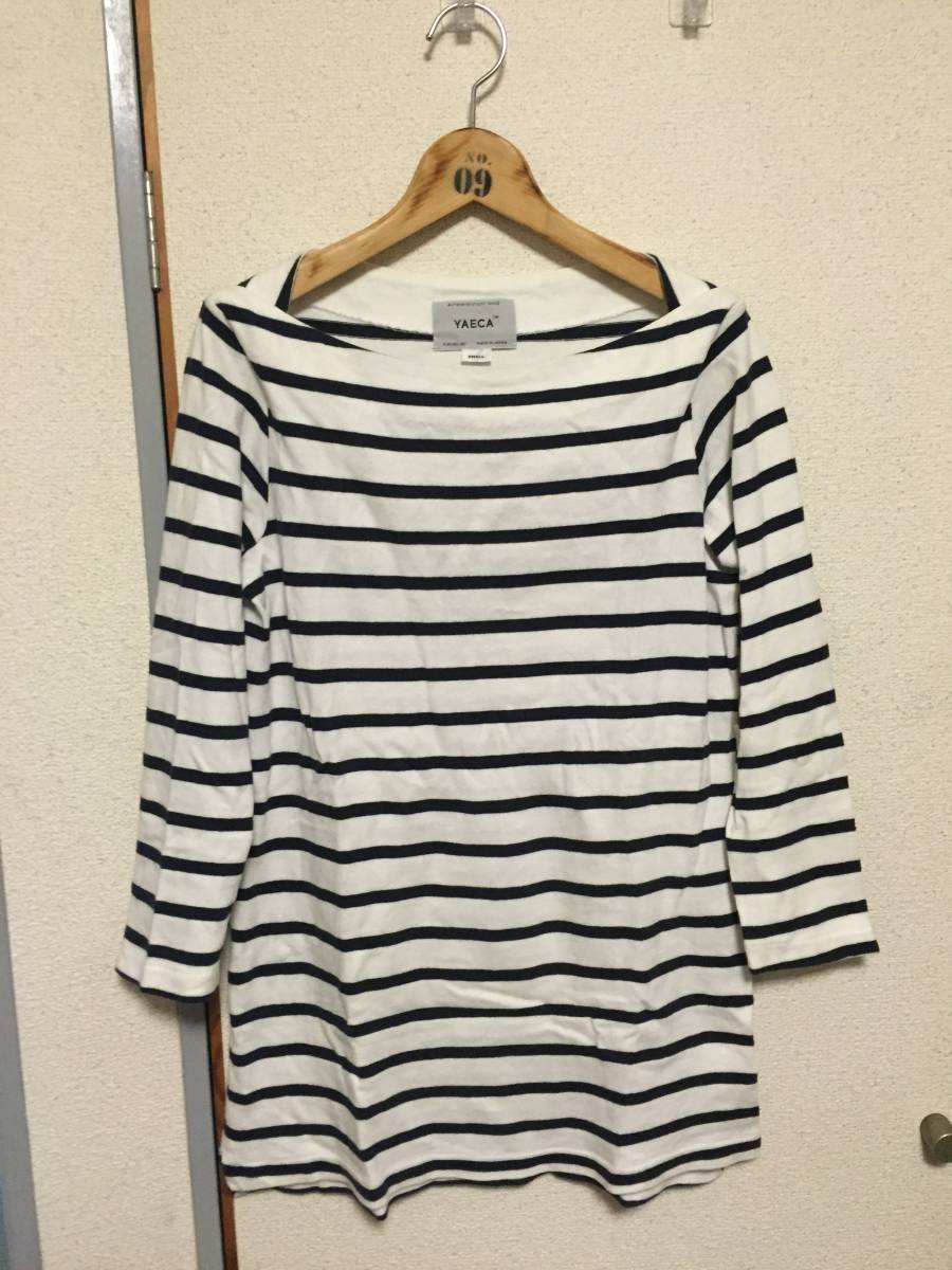 ヤエカのボートネック七分袖シャツになります。