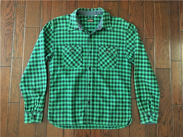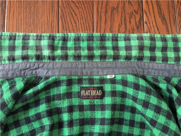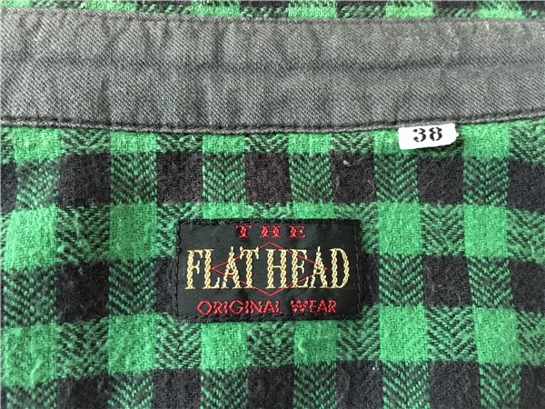 フラットヘッド FLATHEAD 細かい ブロックチェック ネルシャツ 38 緑 黒 マチ付き ビンテージ スタイル メタルボタン