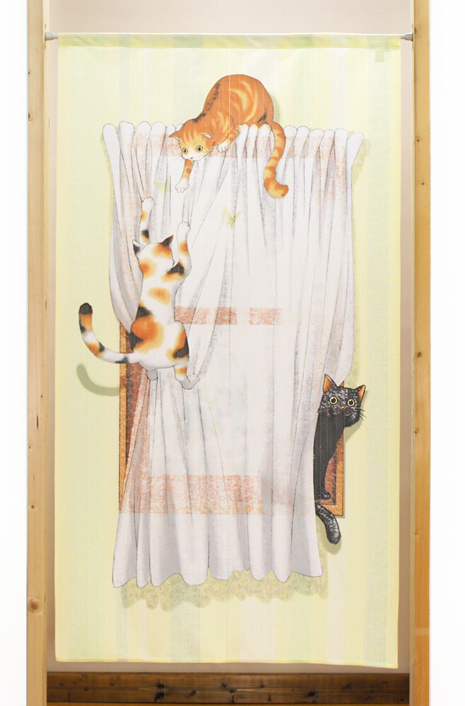 新品  暖簾 のれん 85X150cm みしまゆかり「おてんばキャット」3Dアート【日本製】 コスモ