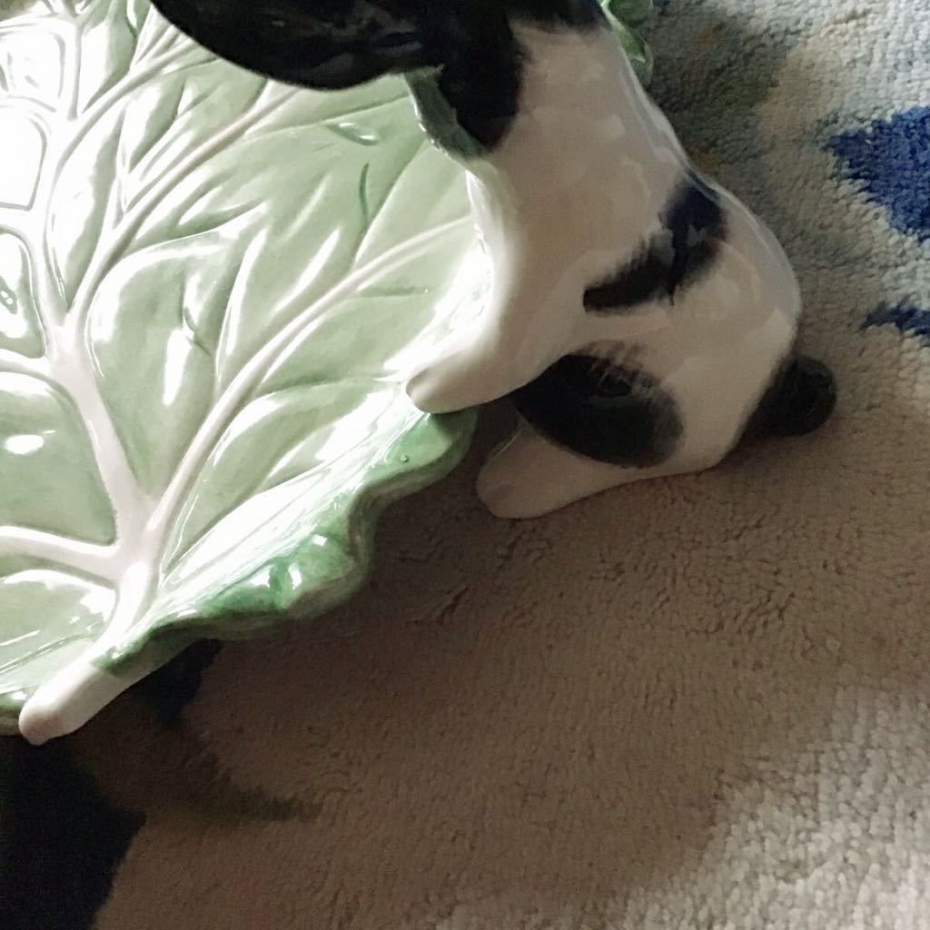 輸送貨物内でウサギの1つの曲がった右耳がポッキリ折れて日本に到着しましたので、アロンアルファで綺麗に留めています。よーくよーく見ないと分かりにくいですが、細かい神経質な方はご遠慮下さい。