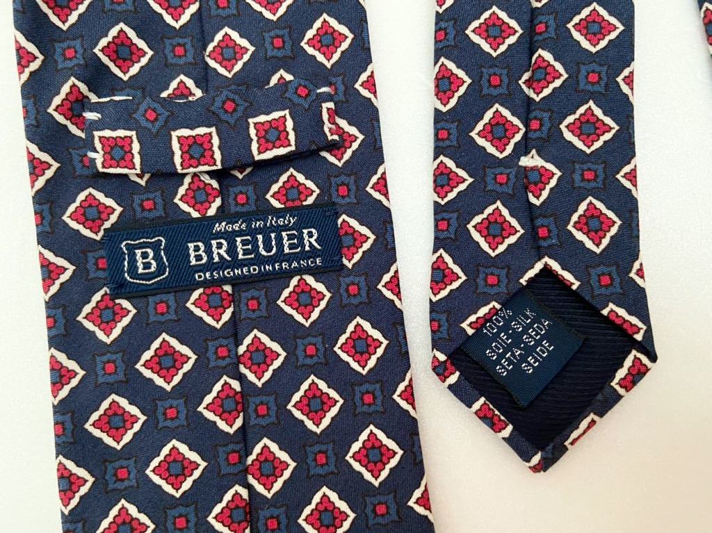 BREUER イタリア製シルクネクタイ フランスデザイン 小紋柄 ブリュア ブリュウワ ネイビー 紺