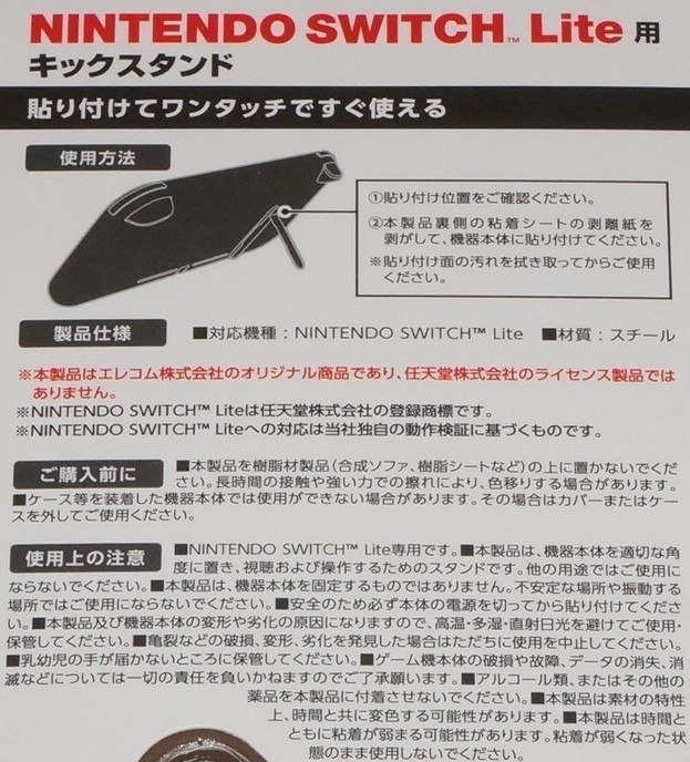 Nintendo Switch Liteに貼りつけて、快適な角度にスタンド出来るキックスタンド。