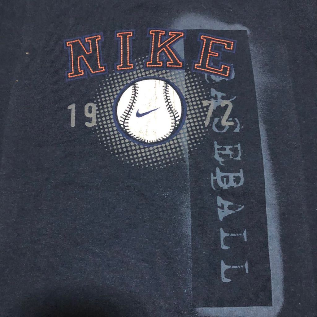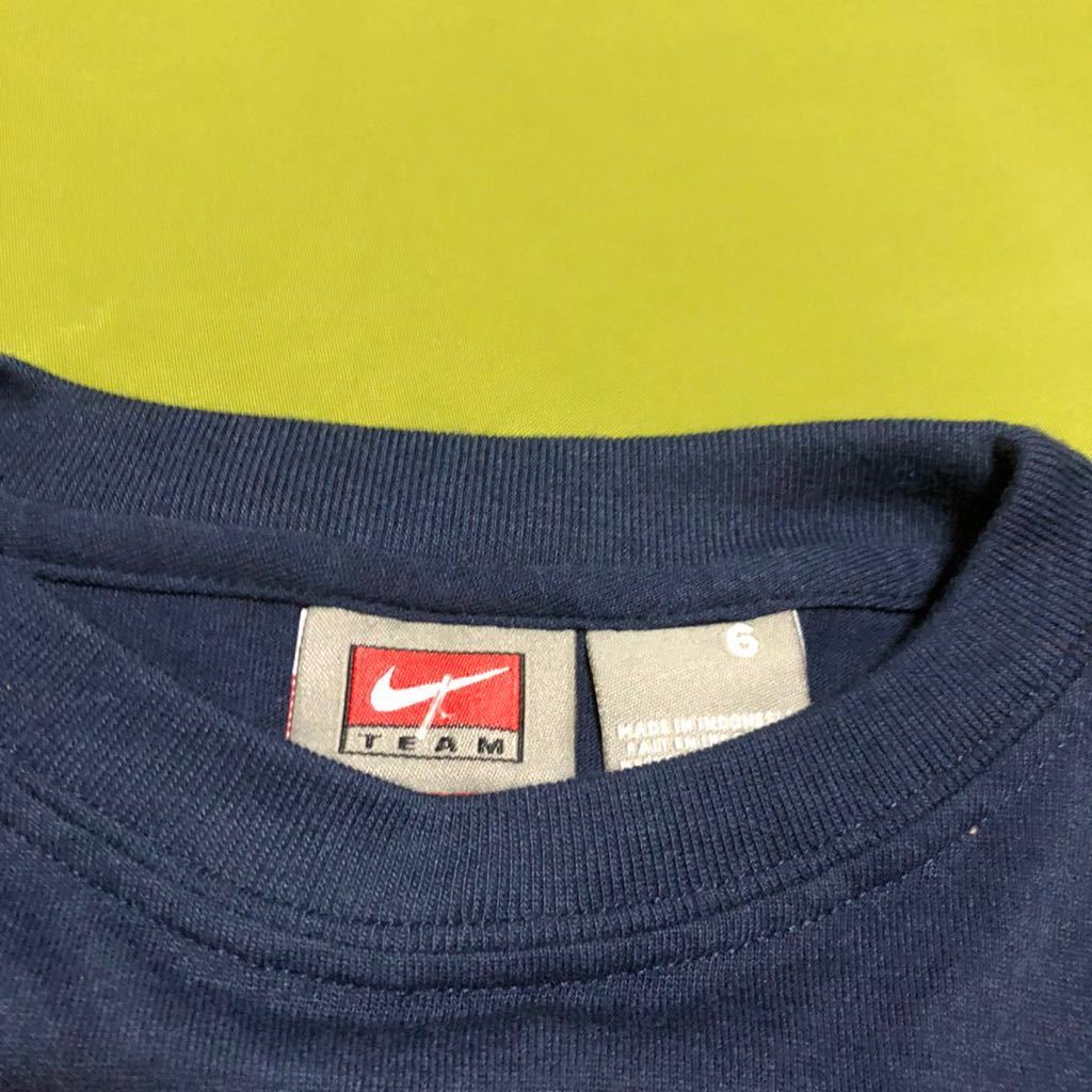 海外のナイキ直営店での購入です。サイズ:6。海外ボーイズサイズの6才用。日本サイズですと120~130㎝前後だと思います。実寸サイズを参考になさってくださいね。実寸肩幅:35㎝ 身幅:39.5㎝ 着丈:46㎝。色:濃紺。胸元のベースボールプリントがお洒落なデザインですよ。自宅用に購入した為、タグは破棄しております(タグがついていたナイロンの紐だけがついている状態です。)。恐れ入りますが 落札後のキャンセル 返品はお断り申し上げます。落札後に落札者様からのご連絡をお願いいたします。定型外発送も可能です。恐れいりますが、お振込みは落札日より金融機関の2営業日以内でお願い致します。