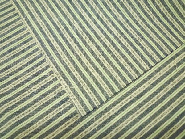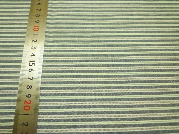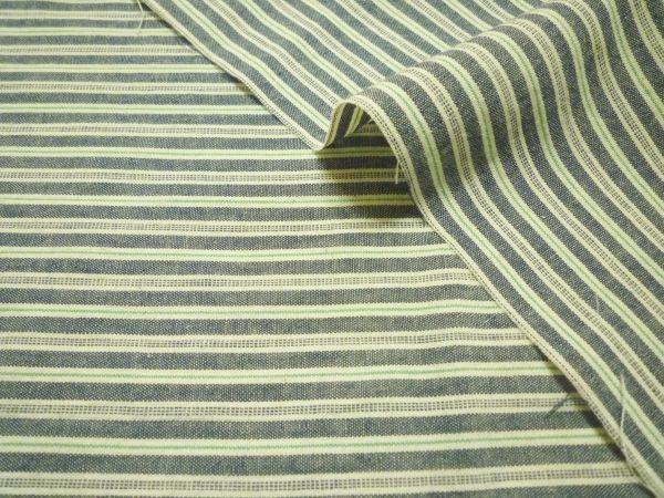 902608《生地の切売》白紺緑色 ストライプ 綿麻【50cm単位】