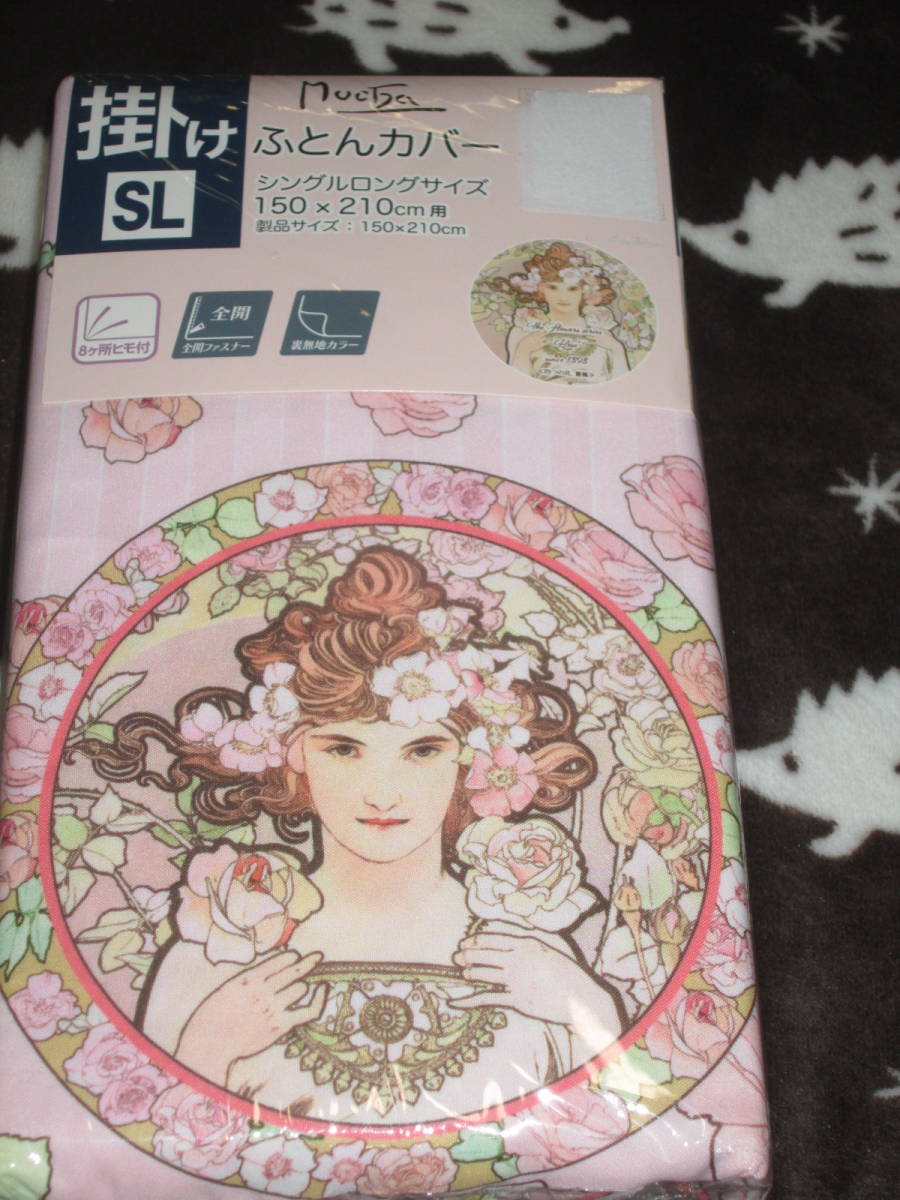 ミュシャ Mucha 掛け布団カバー。SLサイズ。8ヵ所ヒモ。全開ファスナー。裏無地カラー。