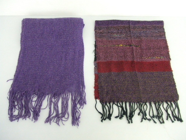 紫系ストール2点セット ①紫×金 ②紫×赤×黒