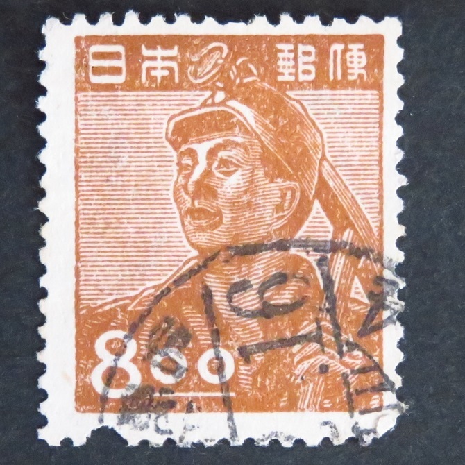郵便切手 日本国 「産業図案切手」 8円 1948年(昭和23年)~1949年(昭和24年) 普通切手 使用済み 昭和すかし 炭坑夫
