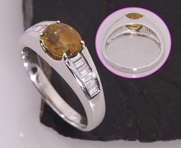 スフェーンの強いファイアによる輝きが美しいリングです。