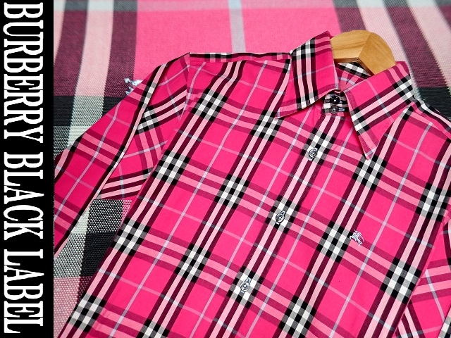 極美品★BURBERRY BLACK LABEL 希少ピンクフルチェックシャツ サイズ1