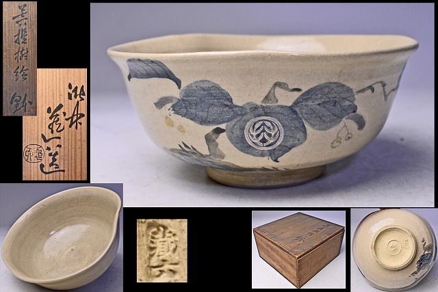 名工 真清水蔵六 (泥中庵)氏の 作品です。 凹みを付けた 造形に 絵付けが 味わいのある 逸品です。 共箱に汚れ・イタミがあります。