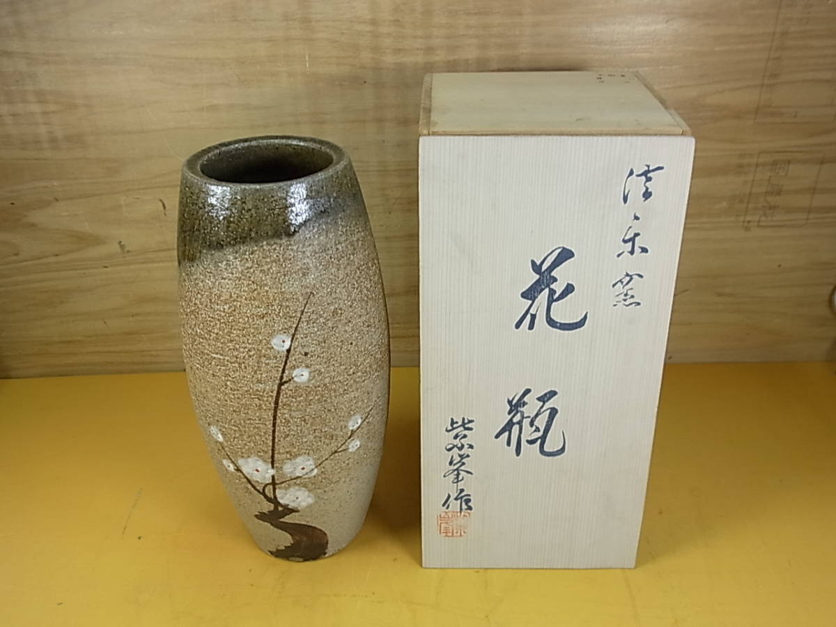 □Yb/624☆信楽窯 信楽焼☆花瓶 梅花☆紫峯作☆高さ29.5cm☆中古品 | |