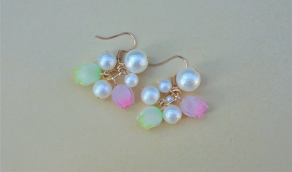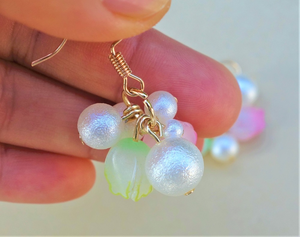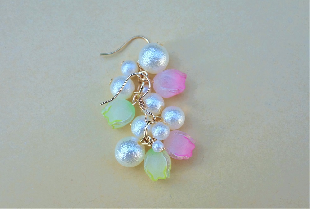 【プラ板/鈴蘭/ピアス/ピンクと薄緑】送料無料/ハンドメイドアクセサリー