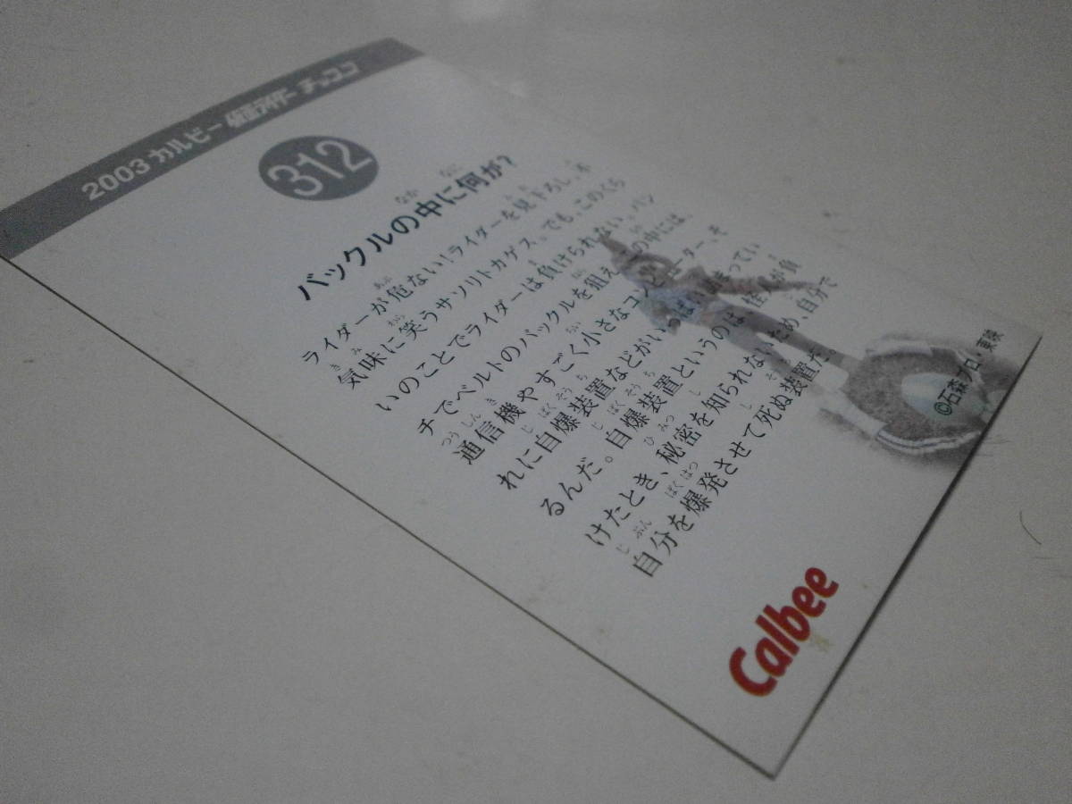 新品未使用 2003 Calbee カルビー 仮面ライダー チップス カード 312 バックルの中に何が? トレーディングカード トレカ 石森プロ 特撮